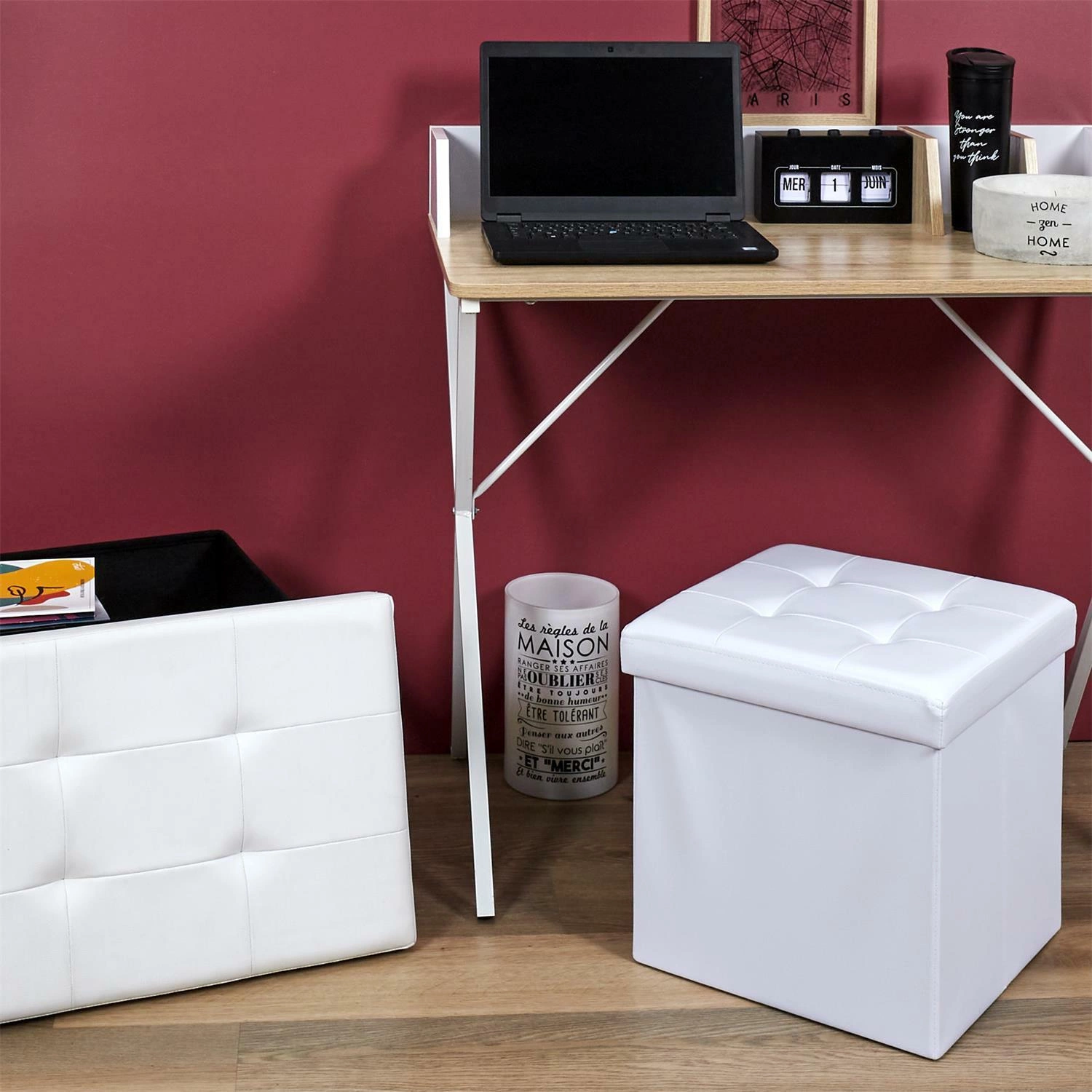Pufa se schovkou Intesi Vels je stylový a praktický doplněk do vašeho interiéru, který spojuje eleganci glamour stylu s funkčním využitím v každodenním životě. Čtvercový tvar o rozměrech 38×38×38 cm a bílá barva zaručují, že se pufa perfektně hodí jak do předsíně, tak do obývacího pokoje. Vyrobena z kvalitní ekologické kůže poskytuje pohodlné posezení, zároveň nabízí prostorný úložný prostor na drobnosti. Díky možnosti složení ji snadno uschováte nebo přesunete podle potřeby a ušetříte místo.