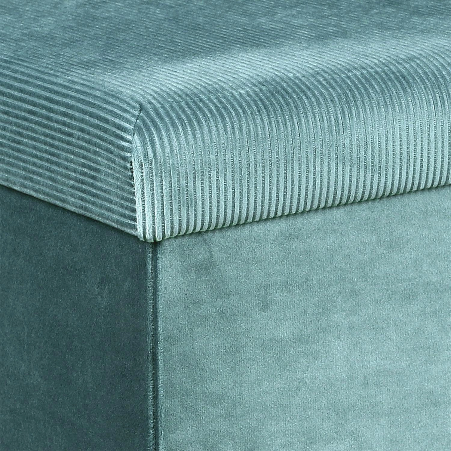 Design pufy Intesi Velse vyniká použitím strukturovaného manšestru v trendy, mořsky modrém odstínu. Materiál je příjemný na dotek a zároveň odolný – zvládne každodenní intenzivní používání bez rizika rychlého opotřebení. Obdélníkový tvar se skvěle hodí do moderních i elegantních interiérů, přináší prostoru svěžest a útulnost.