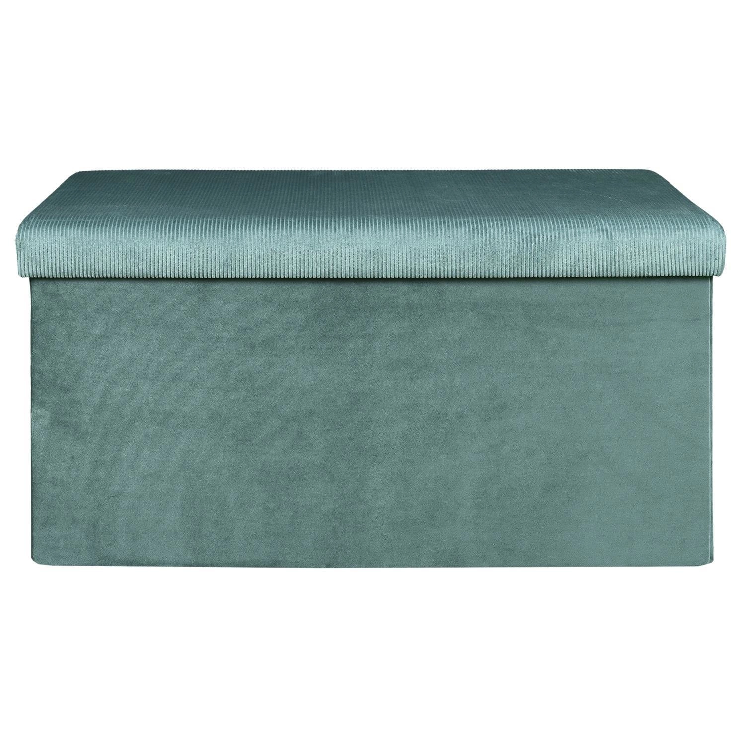 Pufa Intesi Velse je moderní sedací taburet obdélníkového tvaru, vyrobený z měkkého manšestru v hlubokém, mořském odstínu. Díky rozměrům 76×38×38 cm a možnosti složení je pufa ideální jako přídavné místo k sezení i prostorný úložný box na domácí doplňky. Maximální nosnost do 80 kg zaručuje pevnost a skrytý úložný prostor pod sedákem vám pomůže snadno udržet pořádek v obývacím pokoji.