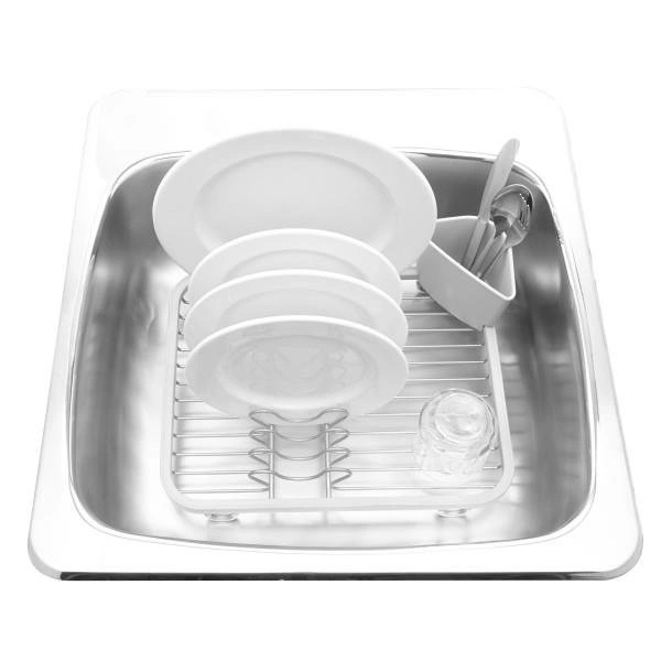 Odkapávač na nádobí na dřez a pracovní desku Sinkin od značky Umbra je praktický a stylový sušák na nádobí, navržený s ohledem na moderní kuchyně. Vyrobený z odolného kovu v bílé barvě a kvalitního plastu, poskytuje spolehlivou oporu při každodenním mytí nádobí. Díky kompaktním rozměrům 36,5 × 27,9 × 13,3 cm je tento odkapávač ideální jak na pracovní desku, tak i přímo do dřezu.