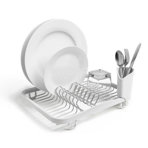 Odkapávač na talíře a příbory Sinkin se vyznačuje praktickým uspořádáním přihrádek, které usnadňuje organizaci nádobí. Speciálně vyhrazený prostor na příbory zajišťuje dostatečnou ventilaci a rychlé schnutí, takže jsou vždy připravené k použití. Pevný kovový rám s bílým povrchem dodává sušáku elegantní vzhled, který zapadne do každé moderní kuchyně.