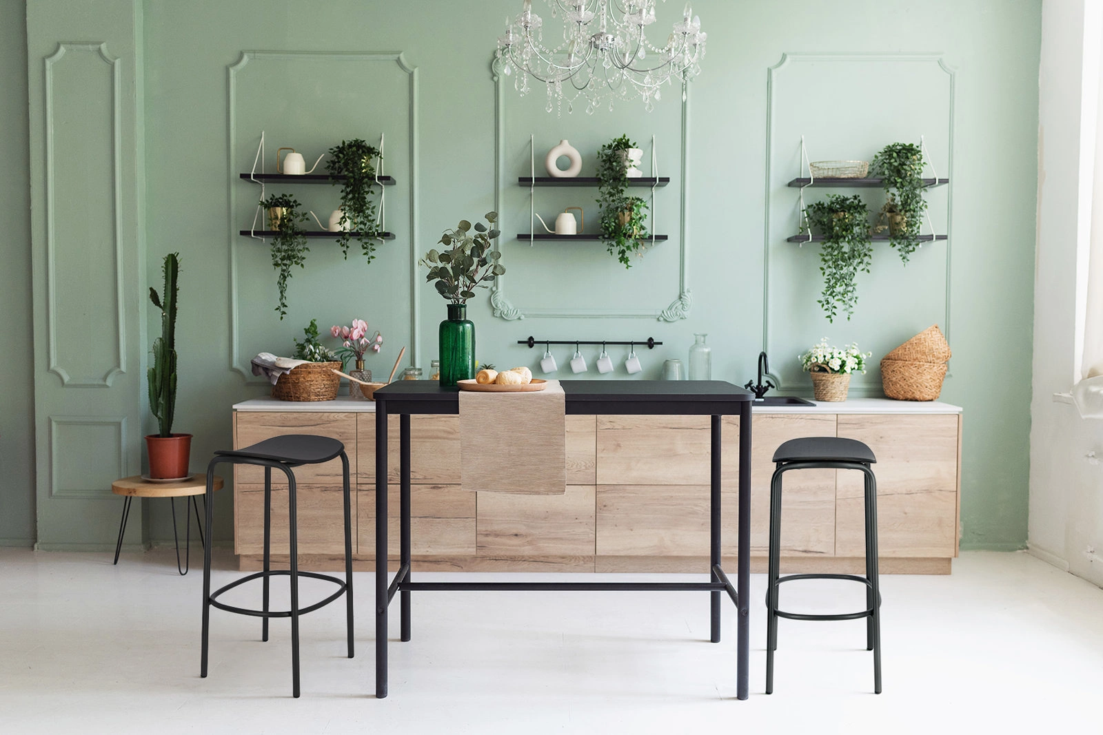 - Výška sedáku 67 cm – optimální pro standardní kuchyňské ostrůvky a barové pulty