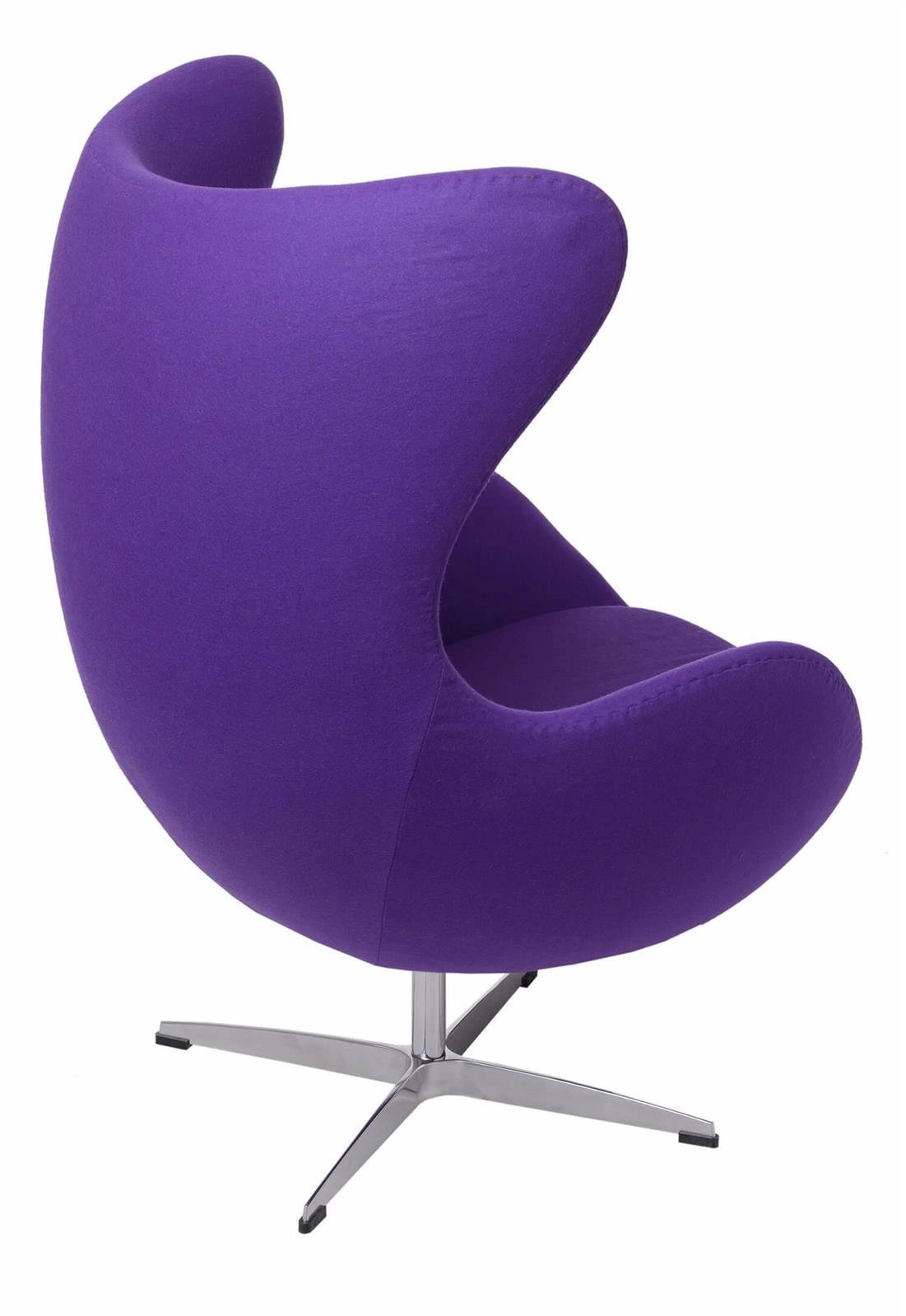 Křeslo ušák Jajo inspirované modelem Egg se vyznačuje moderním tvarem a jemným glamour stylem, který perfektně podtrhne charakter i těch nejnáročnějších interiérů. Jeho výrazné fialové čalounění z kašmíru dodává interiéru jedinečný barevný akcent, je příjemné na dotek a šetrné k pokožce. Díky těmto detailům se křeslo stává nejen praktickým, ale také dekorativním prvkem vašeho obývacího pokoje nebo domácí pracovny.