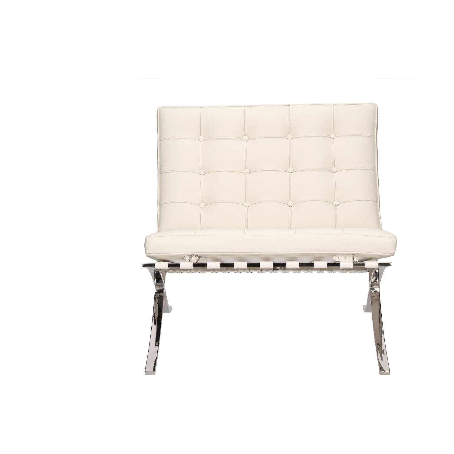Odpočinkové křeslo BA1 od značky D2.DESIGN je ikonou moderního designu, inspirovanou legendárním modelem Barcelona. Vyrobené z přírodní bílé kůže a podepřené elegantní chromovanou základnou ve tvaru lyžin, spojuje v sobě pohodlí, styl a odolnost. Široké sedadlo o rozměrech 77×50 cm a celková výška 75 cm z něj dělají ideální volbu do obývacího pokoje nebo pracovny, kde záleží na luxusu a komfortním relaxu každý den.