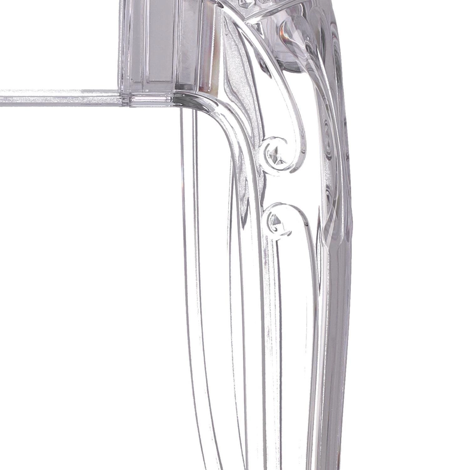 Tento kus nábytku bude skvělým doplňkem do jídelny, kuchyně nebo obývacího pokoje. Díky průhledné barvě jakoby splyne s okolím, díky čemuž opticky nezabere příliš místa. Zdá se, že světlo, které se od něj odráží, dokonce zvětšuje rozměry místnosti, ve které se nachází.