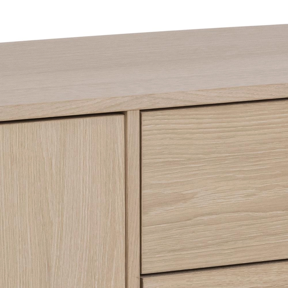 Jednoduchý a harmonický design komody Aston vnáší do interiéru pocit pořádku a svěžesti. Bělený dub a přirozená textura dřeva skvěle ladí se světlými a prostornými aranžemi typickými pro skandinávský styl. Stabilní základna na čtyřech nohách dodává nábytku lehkost a zároveň usnadňuje úklid pod komodou – praktické řešení pro každodenní použití.
