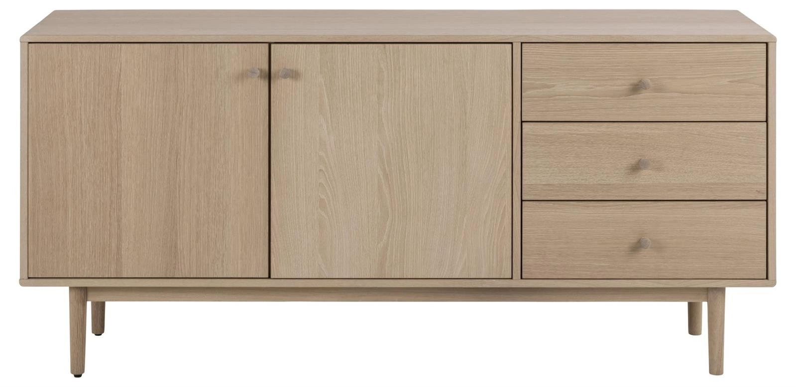 Komoda Aston dub bělený od značky Actona je ideální volbou pro milovníky skandinávského stylu, kteří ocení přírodní materiály a praktičnost. Tento dřevěný kus nábytku o šířce 160 cm je vybaven třemi prostornými zásuvkami a čtyřmi policemi, takže perfektně zapadne jak do obývacího pokoje, tak i ložnice. Pečlivě zvolený světlý odstín běleného dubu, hladké čelní plochy a jemné dřevěné úchyty podtrhují minimalistický a nadčasový charakter komody.