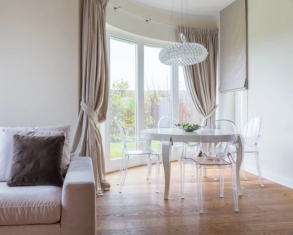 • Transparentní polykarbonát – opticky zvětšuje prostor a dodává interiéru lehkost
