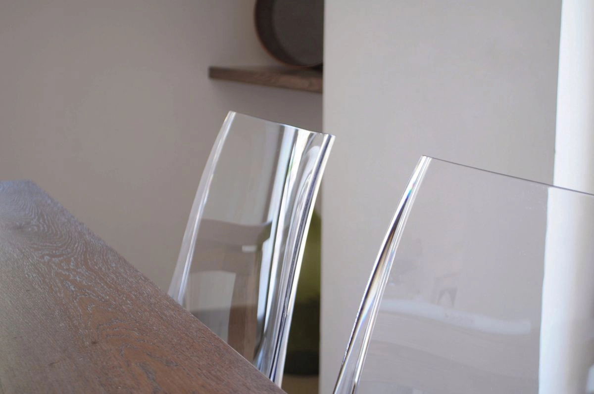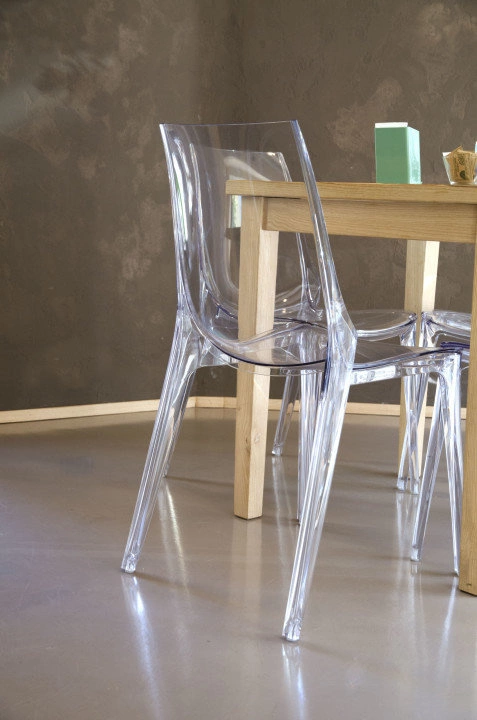 Minimalistický, průhledný design židle Vanity dodává interiéru vzdušnost a opticky zvětšuje prostor. Skvěle zapadne do moderních i glamour aranžmá, jemně zvýrazní krásu jídelního stolu či elegantní konzole v obývacím pokoji. Průhledná konstrukce umožňuje harmonické sladění s ostatním nábytkem, aniž by narušila celkový dojem. Je to perfektní volba do jídelny, obývacího pokoje, ale také jako židle do šatny nebo stylové sezení ke kosmetickému stolku.