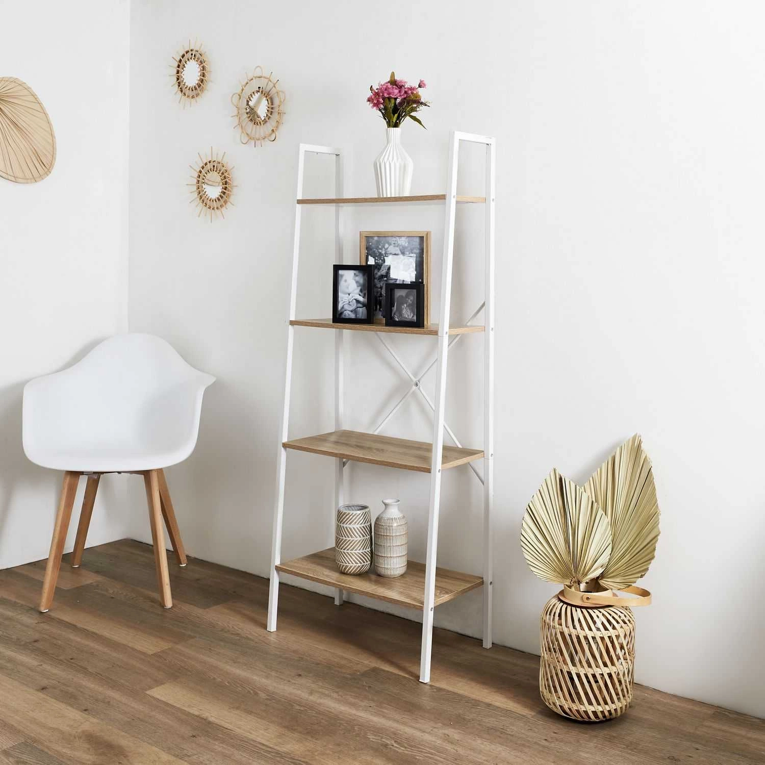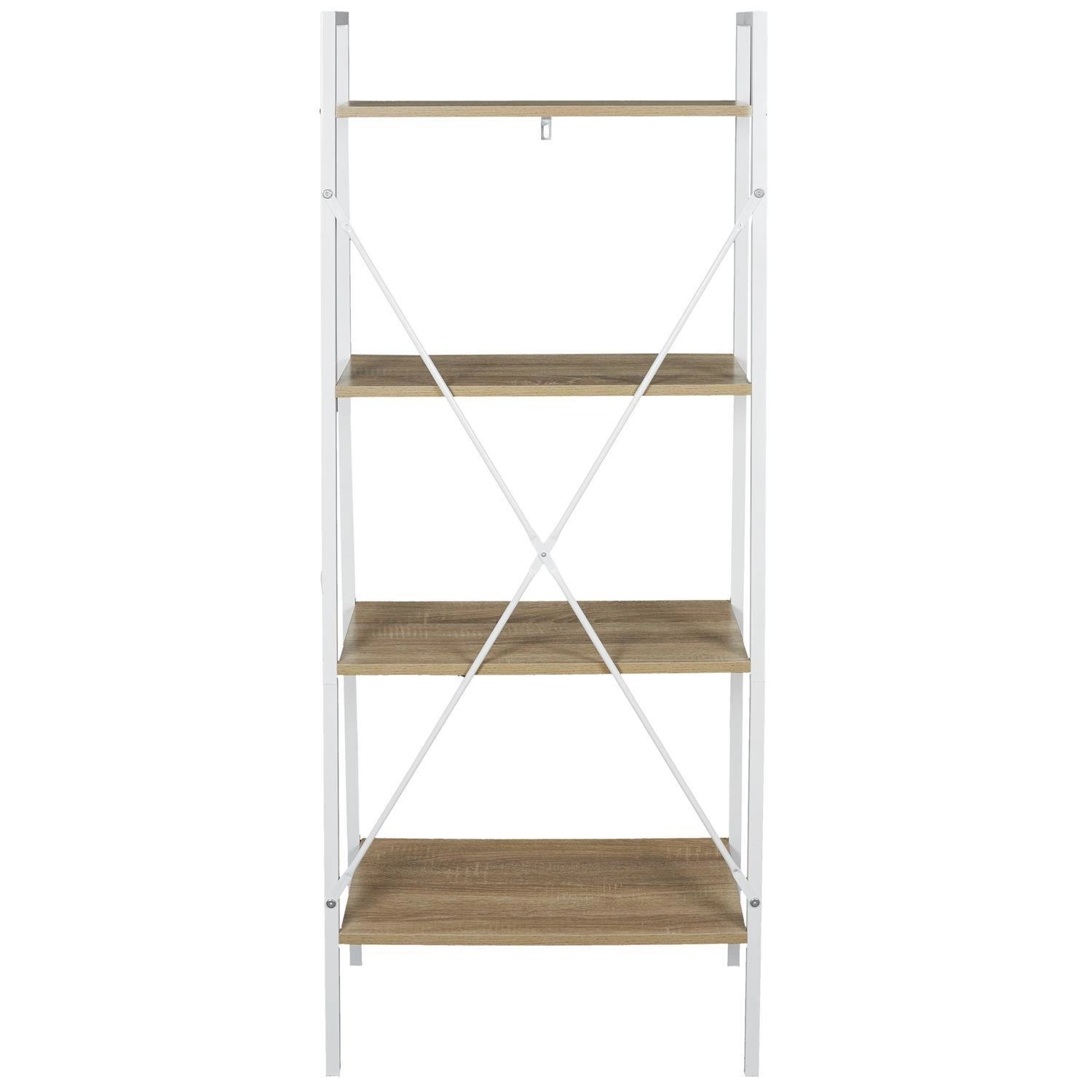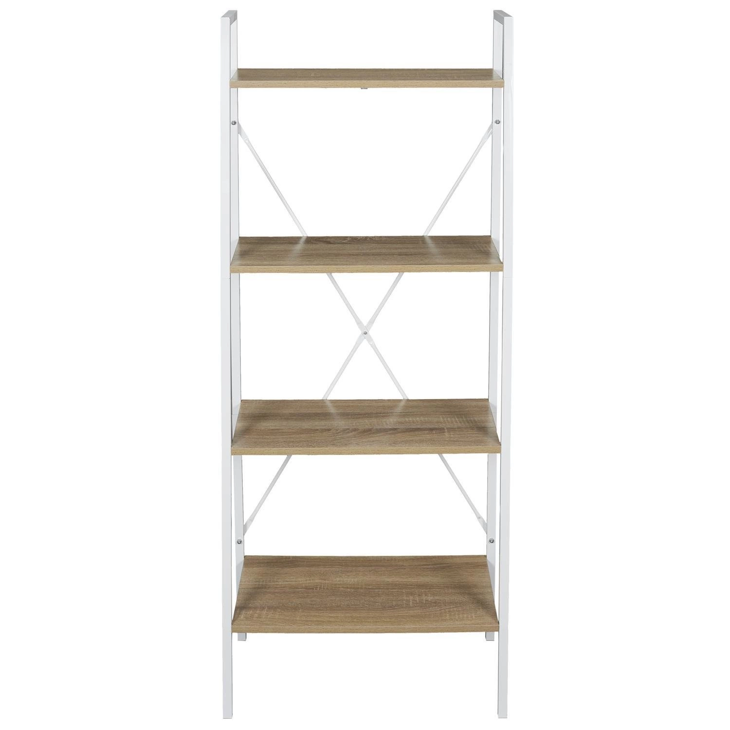 Regál na knihy Cilyan L od značky Intesi spojuje skandinávskou lehkost s moderní funkčností. Je vybaven čtyřmi prostornými policemi a stojí na stabilní kovové konstrukci lakované na bílo. Díky kompaktním rozměrům – výška 148 cm, šířka 60 cm, hloubka 33 cm – je tento regál ideálním praktickým nábytkem do obývacího pokoje, domácí kanceláře nebo dětského pokoje a nabízí dostatek místa jak na knihy, tak i na dekorace.