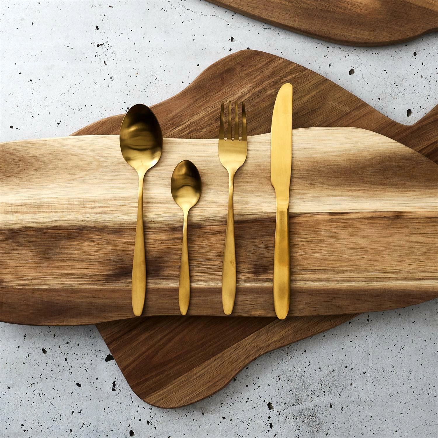 Zlatá sada příborů Charbon Intesi je ideální volbou pro ty, kteří ocení moderní a zároveň nadčasový design. Jednoduché linie, jemně zaoblené tvary a výrazný zlatý odstín tvoří harmonický celek, který ohromí vaše hosty a podtrhne jedinečnost každého stolování. Skvělá volba jak pro běžné obědy, tak pro slavnostní večeře a sváteční hostiny.
