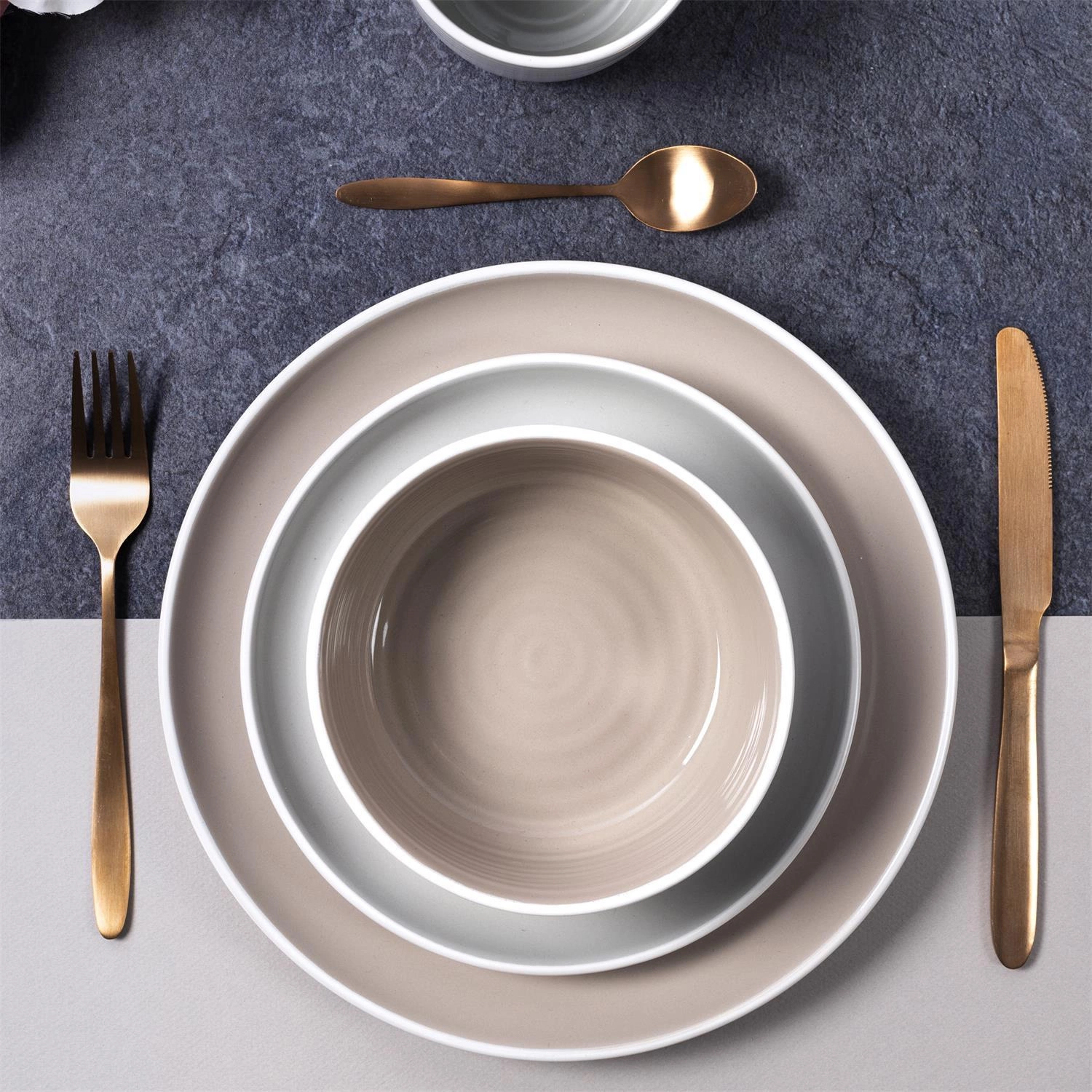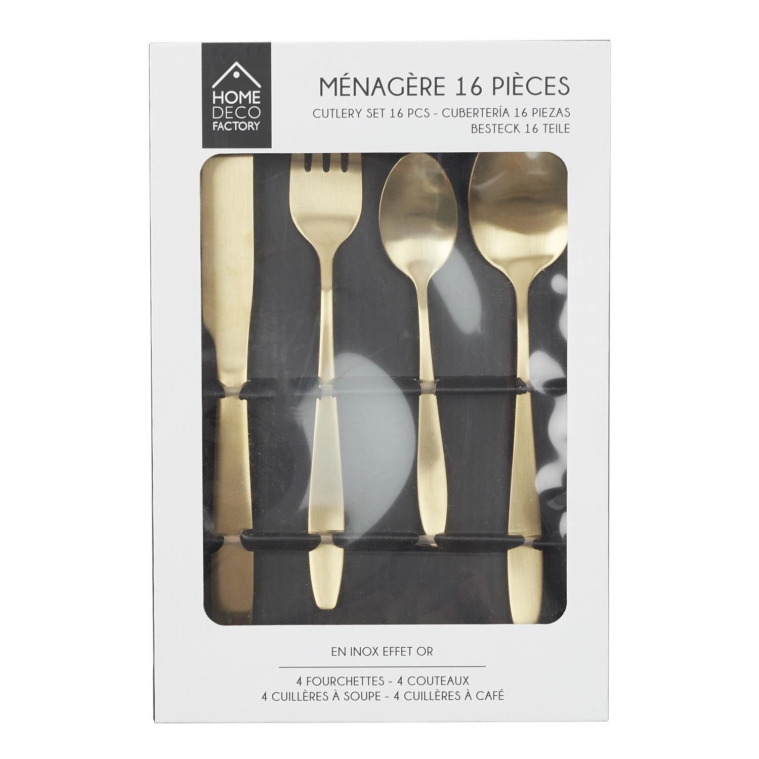 Zlatá sada příborů Charbon od značky Intesi je elegantní komplet z nerezové oceli, ideální jak pro slavnostní příležitosti, tak pro každodenní stolování. Obsahuje 16 dílů, což umožňuje pohodlné servírování oběda pro čtyři osoby. Zlaté provedení a nadčasový, minimalistický design dokonale zapadnou do moderních i klasických jídelen a dodají vašemu stolu nádech prestiže.