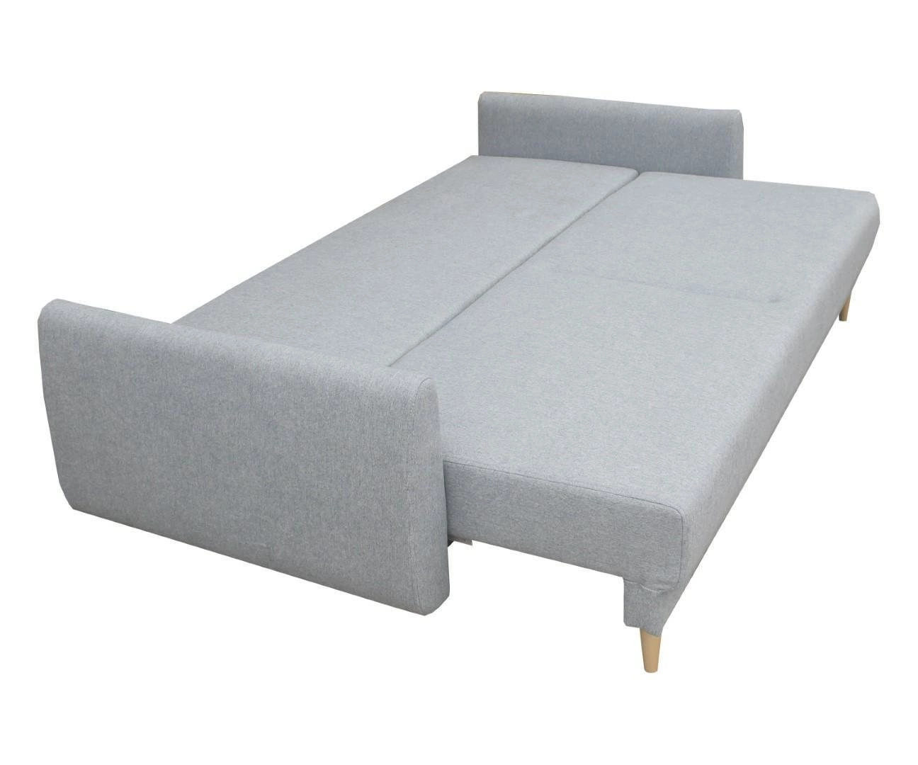 Rozkládací pohovka Forn od značky Intesi je moderním řešením do obývacího pokoje, které spojuje pohodlí při používání, praktickou funkci spaní a funkční úložný prostor na lůžkoviny. Čalouněná odolnou šedou látkou, se šířkou 218 cm a plochou na spaní 140×190 cm, je ideální jak pro každodenní relaxaci, tak i jako pohodlné lůžko pro hosty. Stabilní základna z přírodního borovicového dřeva a pružné sedadlo vyplněné pěnou T30 zaručují dlouhou životnost a maximální komfort na dlouhá léta.