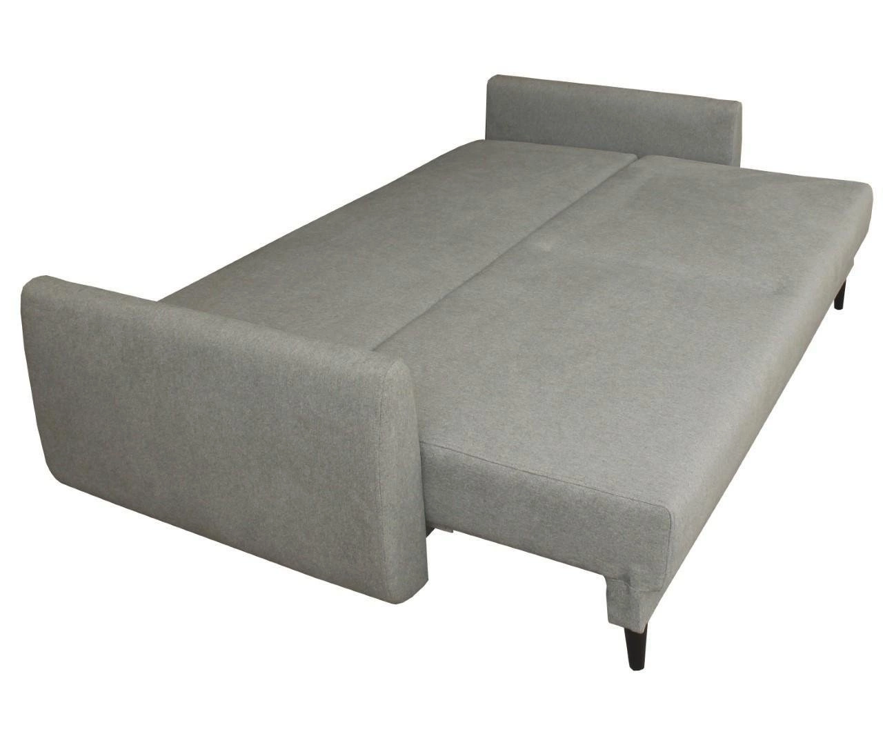 Skládá se z čalouněného sedáku s područkami, který je vyplněn pěnou T30 vyznačující se vysokou hustotou. Doplněná vlnitými pružinami poskytuje velmi dobrou pružnost a vynikající pevnost, která zabraňuje deformaci povrchu. Celek spočívá na černém podstavci z pěti dřevěných nohou a dvou dalších, které podpírají rozkládací část pohovky. Pro ještě větší pohodlí má rozkládací pohovka přídavné polštáře na opěradle a dva menší dekorační polštáře v barvě čalounění.