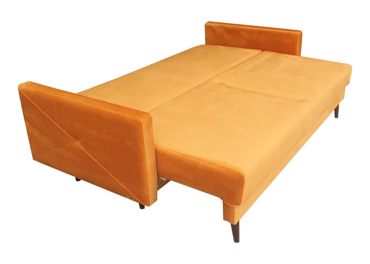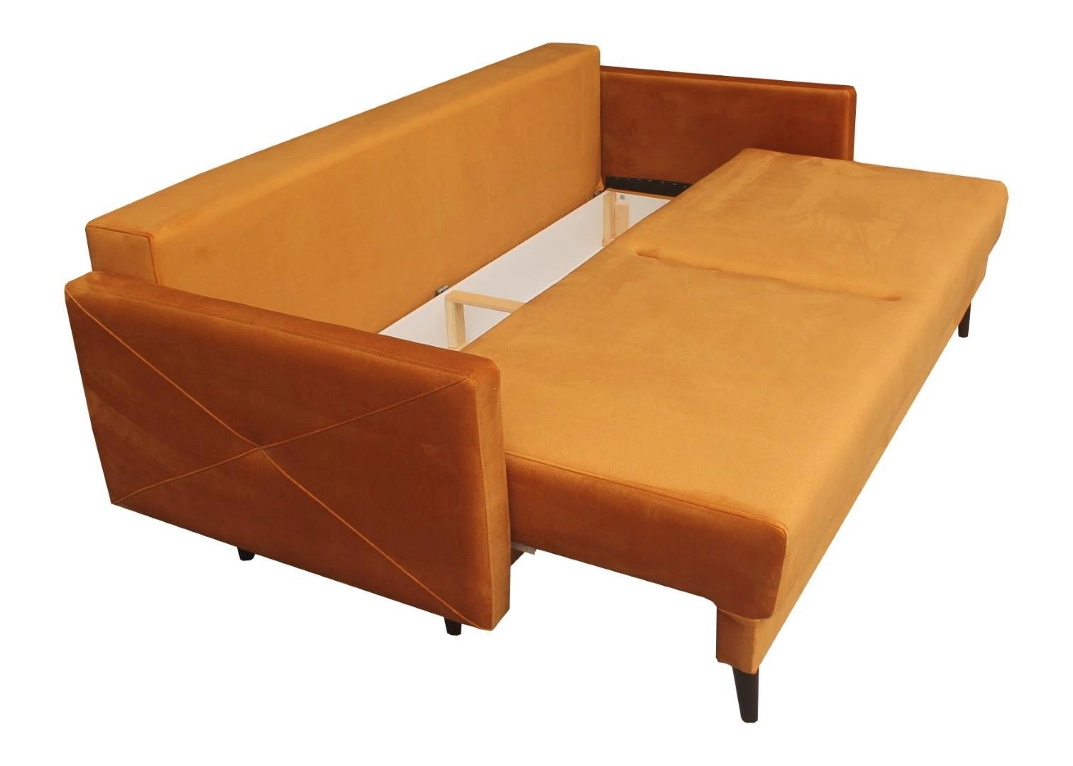 Rozkládací pohovka Saxo od značky Intesi je ideální kombinací moderního stylu a praktičnosti. Tento dvoumístný nábytek o šířce 214 cm a hloubce 98 cm zaujme intenzivní žlutou barvou a stabilní základnou z tmavého ořechového dřeva. Díky rozkládací funkci a prostornému úložnému prostoru na lůžkoviny se skvěle hodí jak do obývacího pokoje, tak i do denní místnosti – spojuje pohodlí každodenní relaxace s komfortem příležitostného přespání.