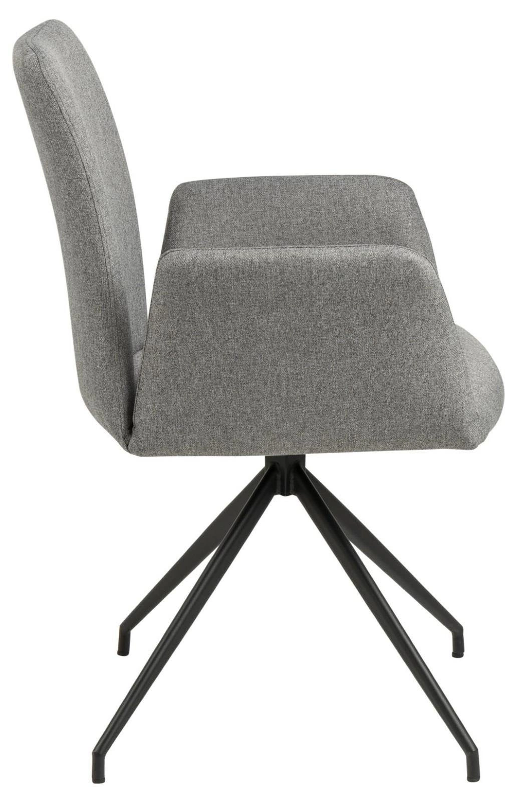 Jídelní židle Naya od značky Actona je spojením moderního designu a pohodlí, které oživí každý interiér. Čalouněná měkkou, šedou tkaninou Malmo, s elegantními područkami a pevnou kovovou podnoží v černé barvě, se skvěle hodí nejen do jídelny, ale také do obývacího pokoje nebo domácí pracovny. Šířka 59 cm a ergonomické opěradlo ve tvaru mušle zajišťují maximální komfort při každodenním stolování i práci u stolu.