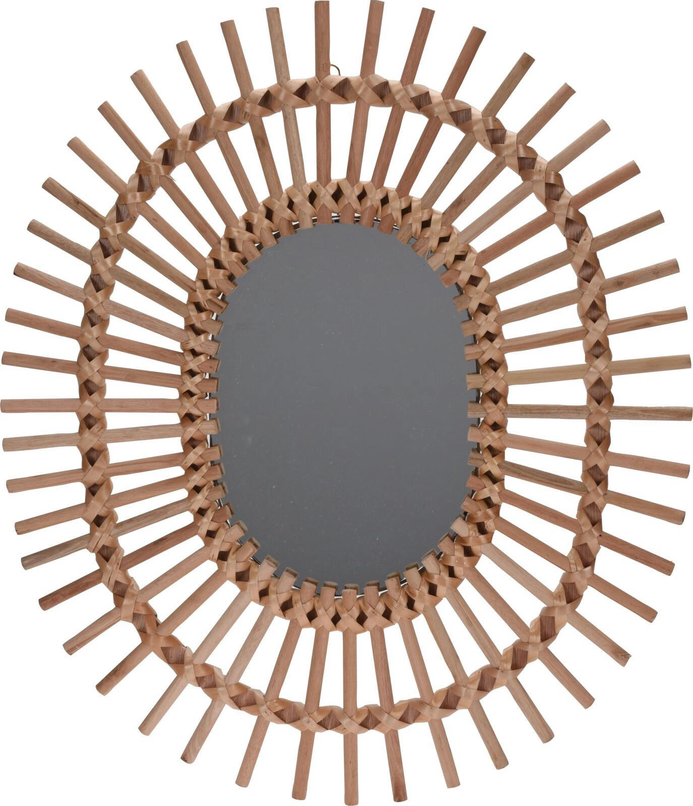 Závěsné oválné zrcadlo Lightwood od značky Intesi je stylovým doplňkem do předsíně nebo obývacího pokoje, který zaujme přírodní, ručně vyráběným rámem z bambusového dřeva a mořské trávy. Jeho rozměry 58×49×2 cm umožňují pohodlné každodenní používání – ať už jako zrcadlo do předsíně, nebo jako dekorativní prvek na stěně v obýváku. Oválný tvar a inspirace boho stylem dělají ze zrcadla výrazný detail, který jemně podtrhne charakter vašeho interiéru.