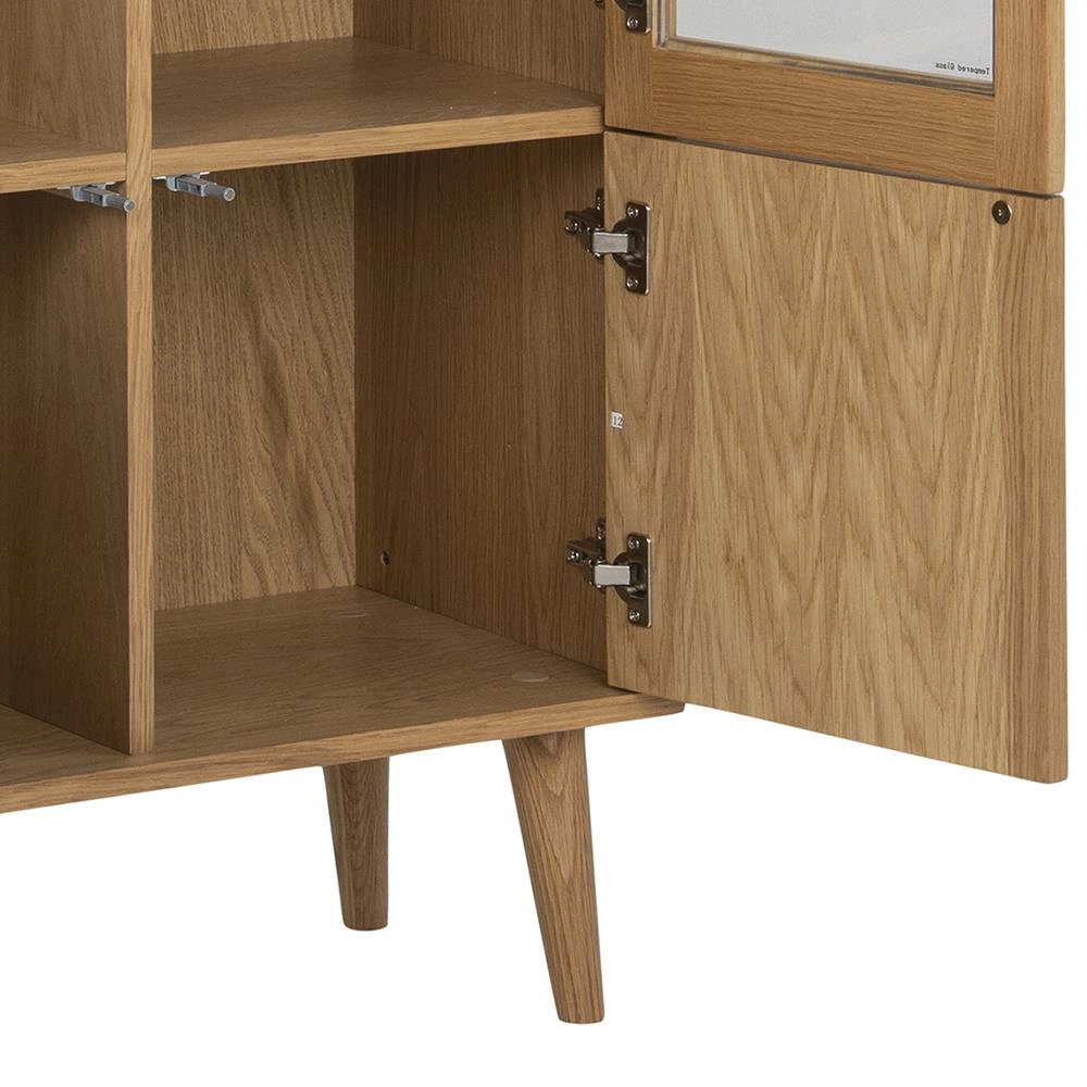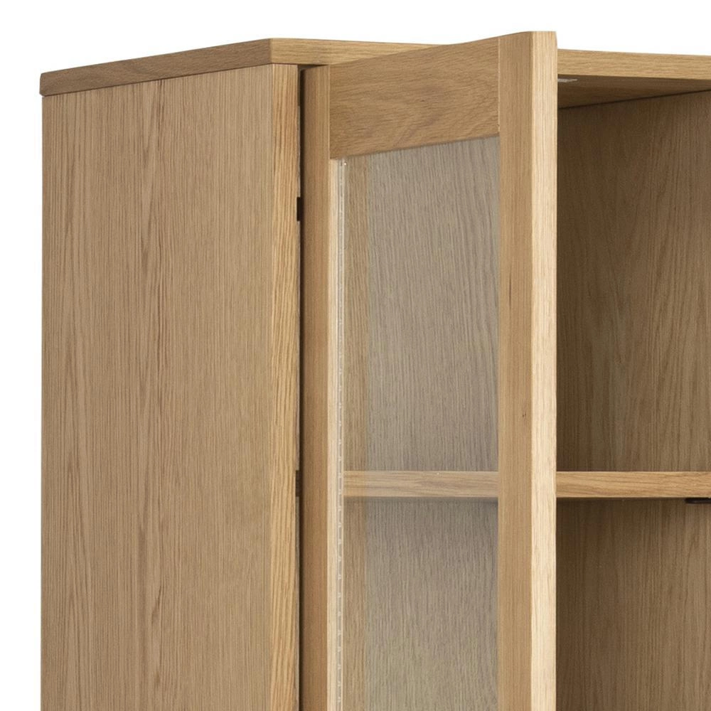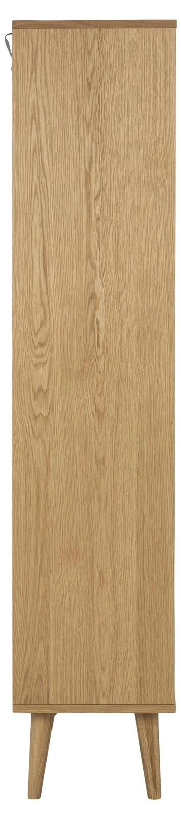 Přírodní hnědý odstín dubového dřeva přináší do vašeho domova útulnost a harmonii typickou pro skandinávský styl. Jednoduché linie, decentní tvar a kombinace matných povrchů s prosklenou vitrínou dodávají knihovně Nagano lehkost a moderní vzhled. Skvěle zapadne jak do světlých, minimalistických obývacích pokojů, tak do domácích kanceláří, kde je důležitá praktičnost i estetika.