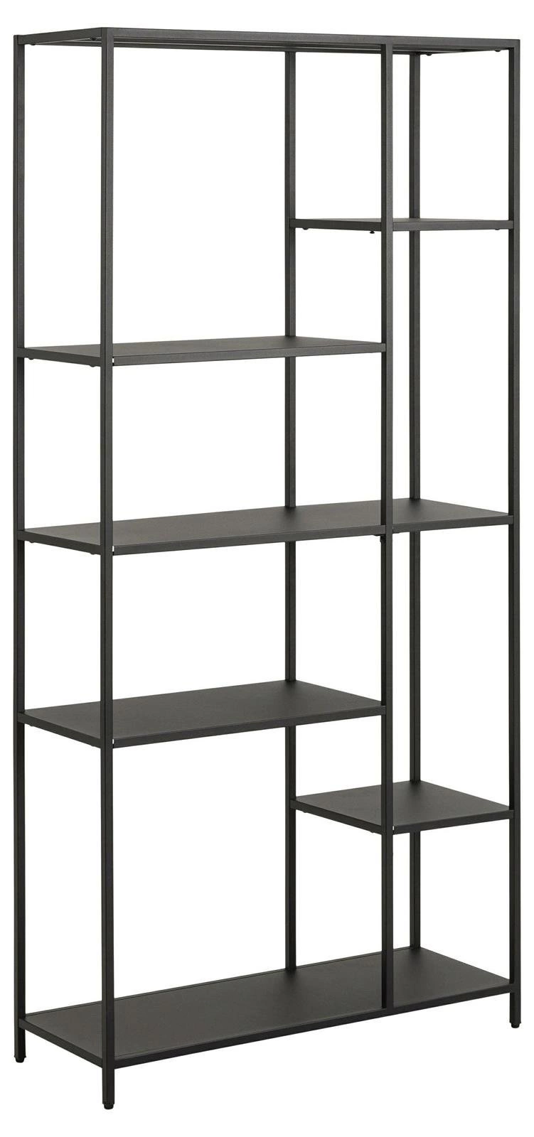 Kovová knihovna Newcastle značky Actona je ideální volbou pro milovníky moderního designu, výrazných tvarů a funkčních řešení. Celokovová konstrukce v černé barvě, výška 165 cm a šířka 79,5 cm, nabízí až 8 asymetrických polic. Tento loftový regál skvěle vynikne v obývacím pokoji, pracovně nebo domácí kanceláři – všude tam, kde záleží na stylu i praktickém úložném prostoru.
