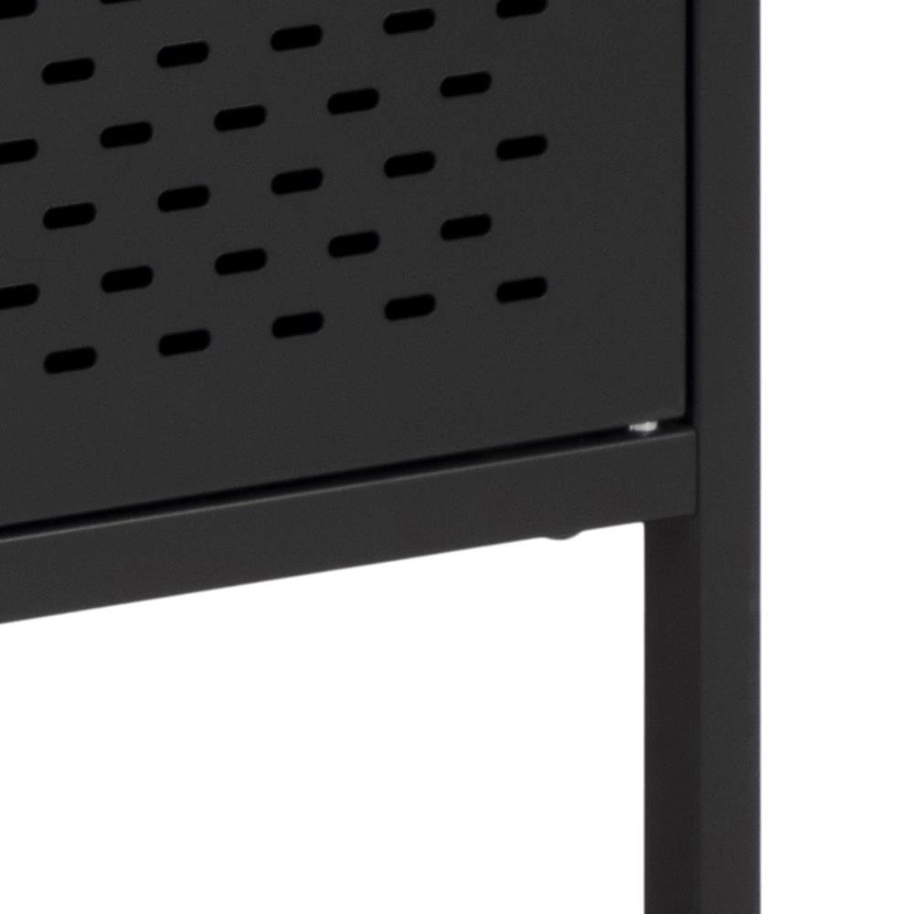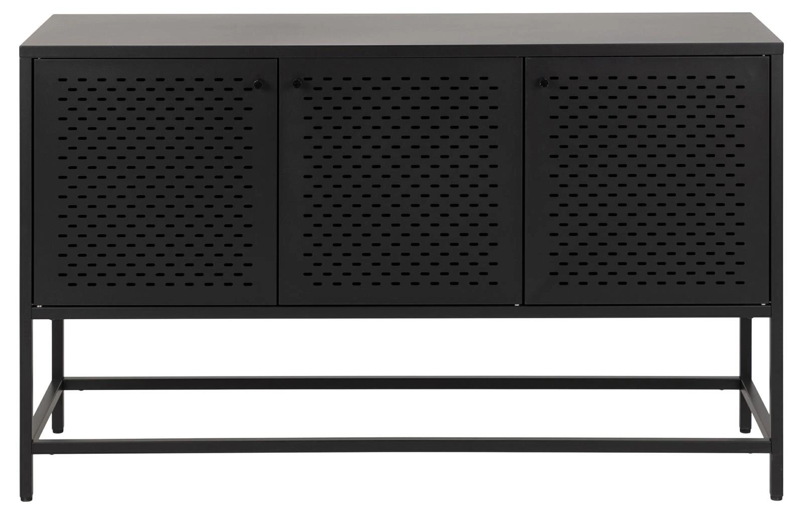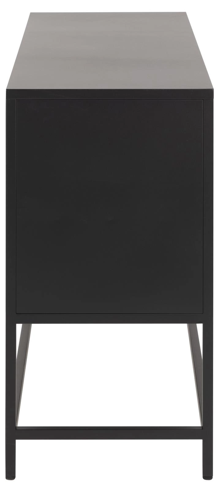 Komoda Newcastle II od značky Actona je černá, industriální kovová komoda na nožkách o šířce 125 cm, navržená pro moderní obývací pokoje a loftové prostory. Je vyrobena celá z matného kovu, vybavena čtyřmi policemi a třemi uzavíratelnými skříňkami s hladkými čely a kovovými úchyty. Nabízí praktické a stylové řešení úložného prostoru. Díky pevné, stabilní konstrukci a výraznému designu komoda skvěle podtrhuje charakter interiéru a zároveň zajišťuje pohodlné každodenní používání.