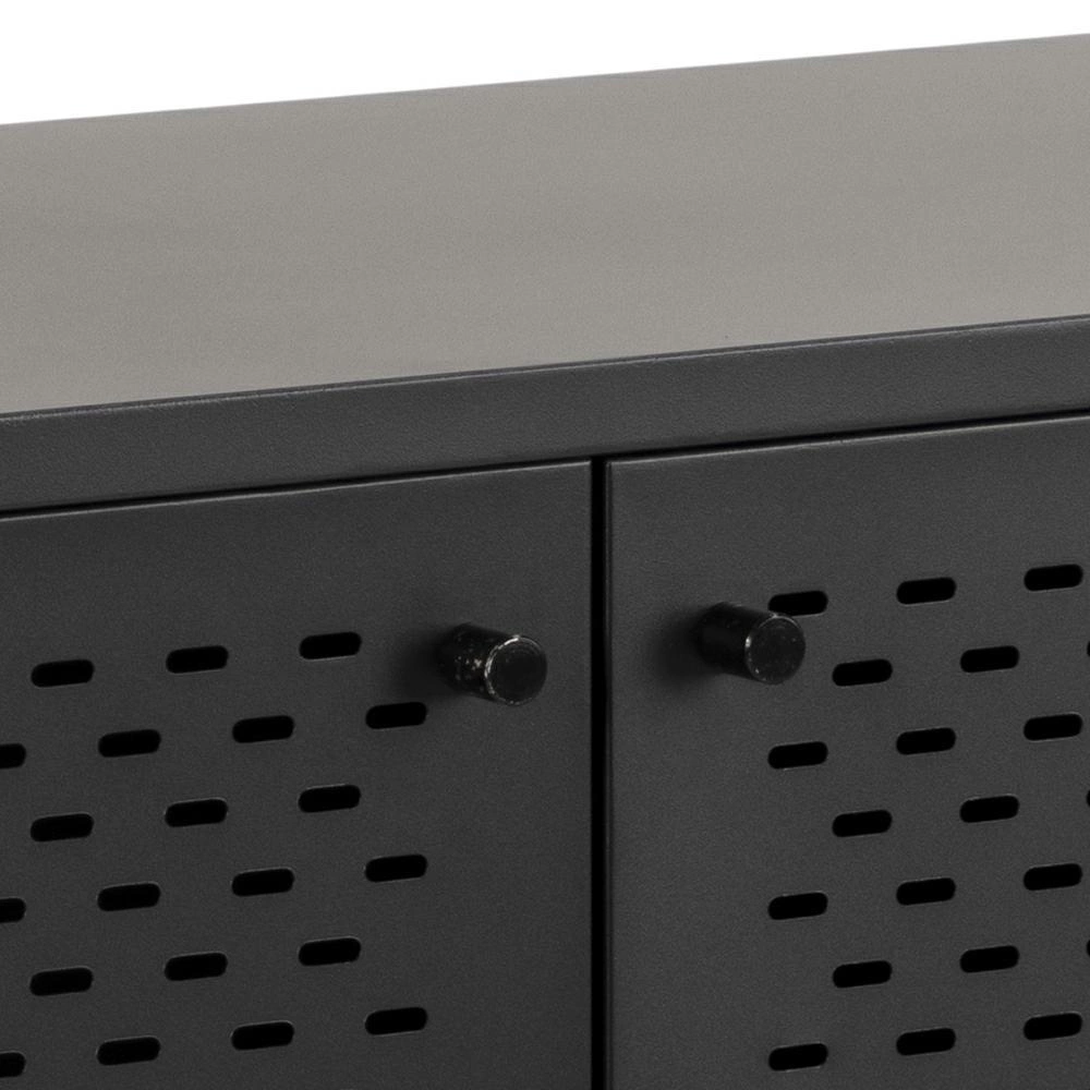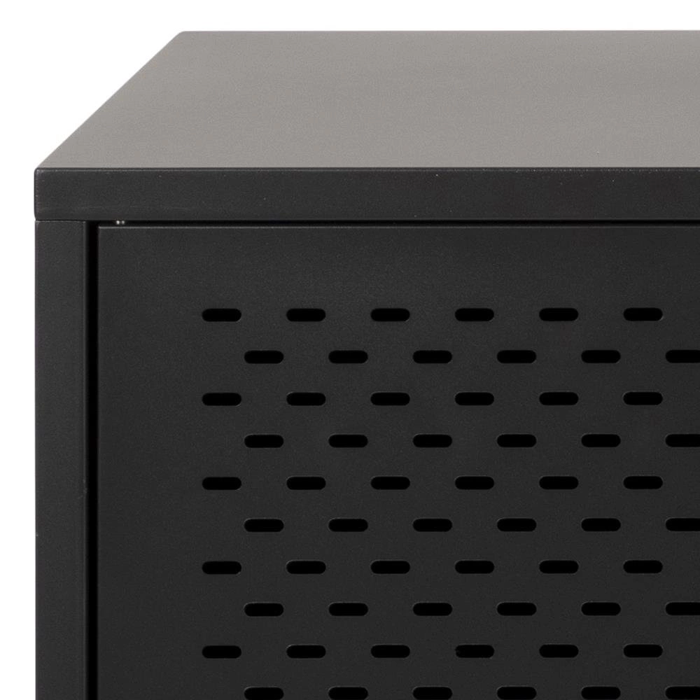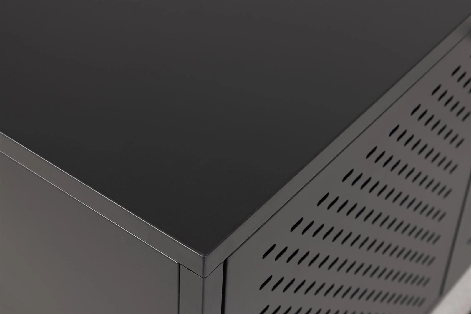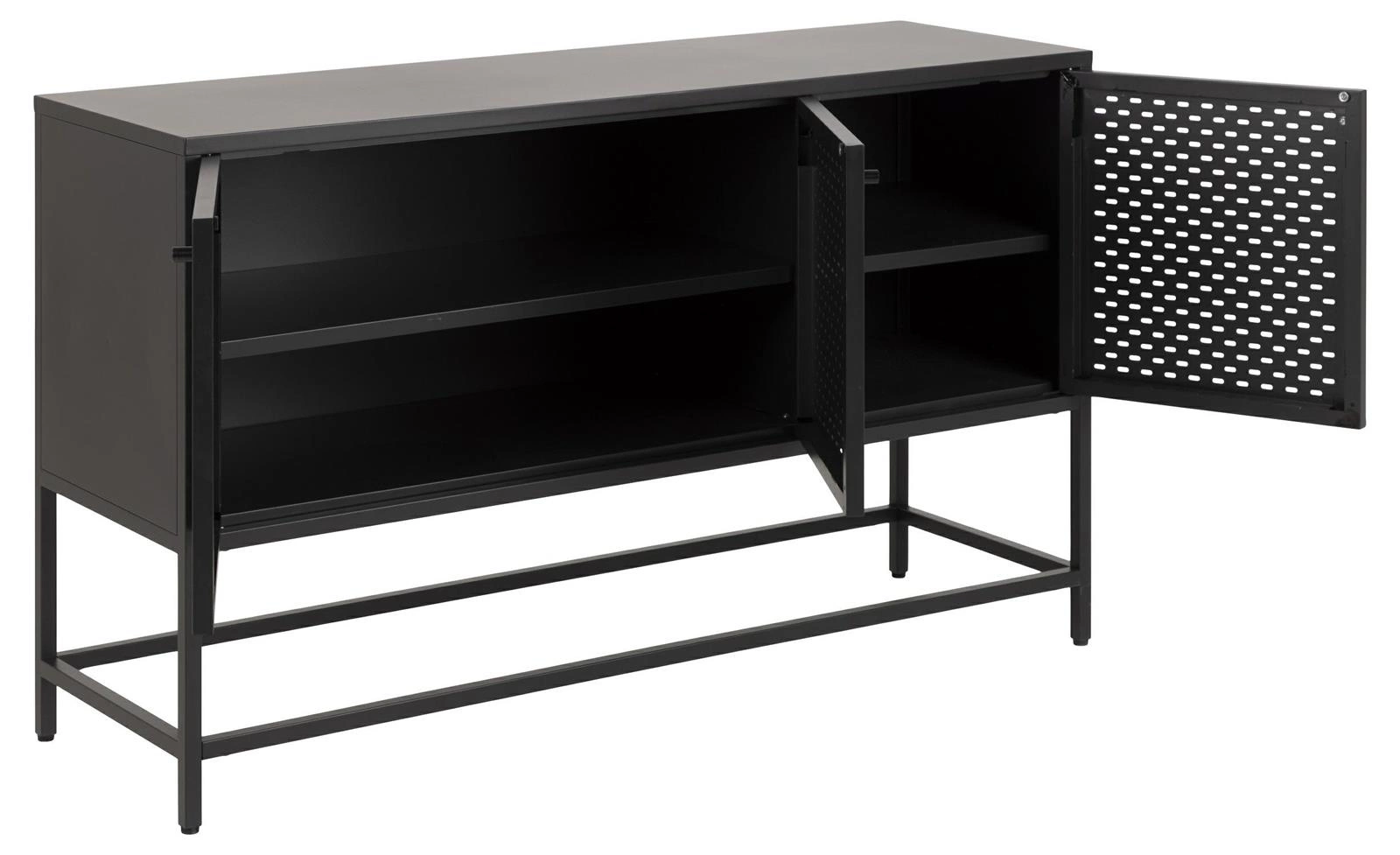 Komoda Newcastle II od značky Actona je černá, industriální kovová komoda na nožkách o šířce 125 cm, navržená pro moderní obývací pokoje a loftové prostory. Je vyrobena celá z matného kovu, vybavena čtyřmi policemi a třemi uzavíratelnými skříňkami s hladkými čely a kovovými úchyty. Nabízí praktické a stylové řešení úložného prostoru. Díky pevné, stabilní konstrukci a výraznému designu komoda skvěle podtrhuje charakter interiéru a zároveň zajišťuje pohodlné každodenní používání.