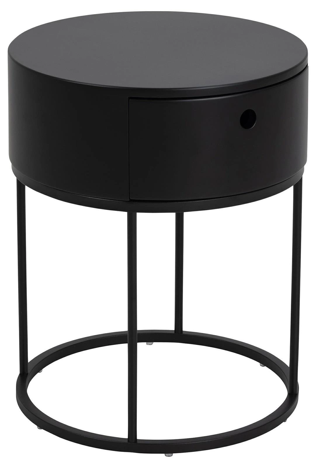 Noční stolek Polo 40 cm černý s kulatou deskou, moderní design Actona