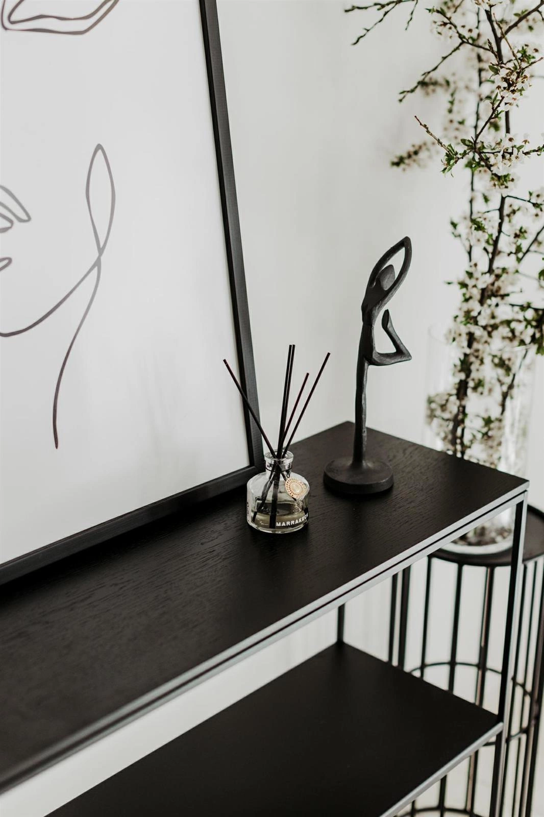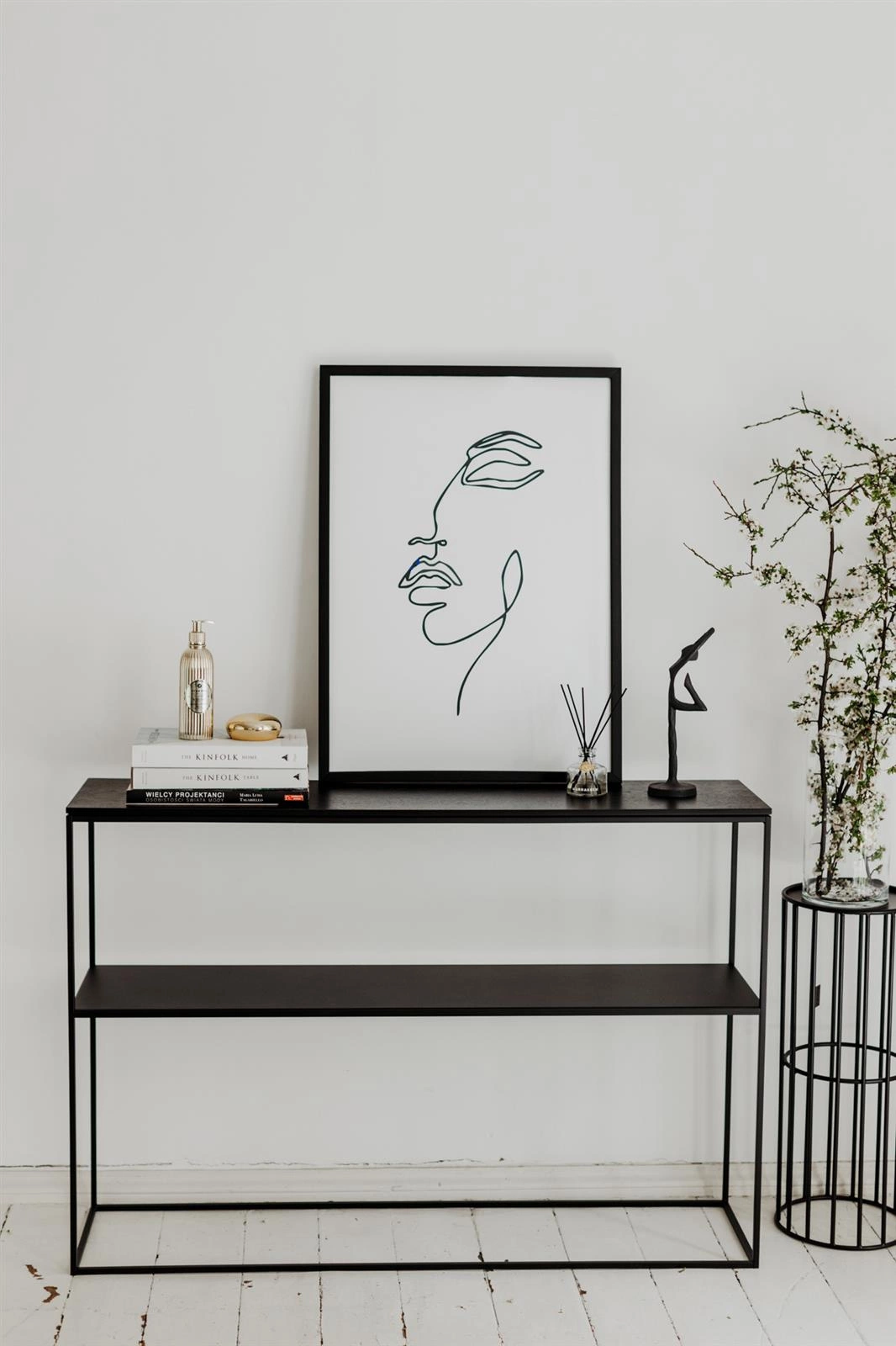 STAM 280 je nejen stylovým doplňkem interiéru, ale především funkčním konzolovým stolkem. Dvě prostorné police usnadňují organizaci – na horní polici můžete umístit dekorace, klíče nebo lampu, na spodní polici pohodlně odložíte tašku, boty nebo úložné koše na drobnosti. Černý dýhovaný povrch se snadno udržuje v čistotě, což ocení každý, kdo preferuje praktický nábytek.