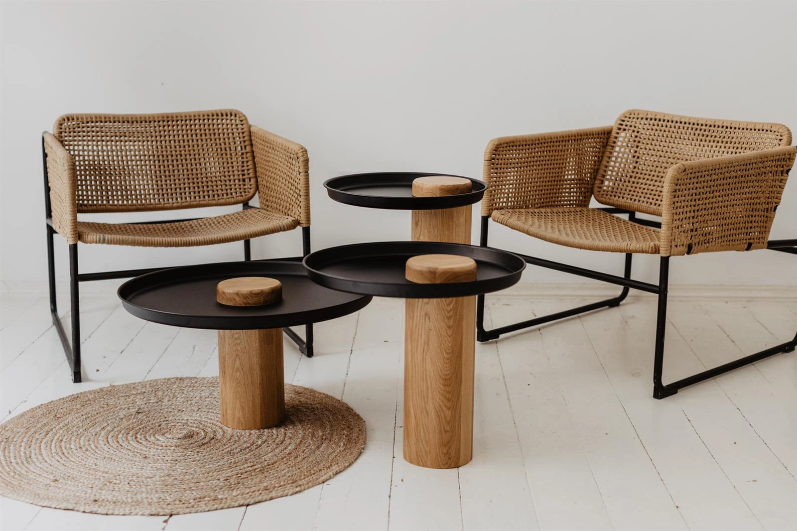 Dubový konferenční stolek TYK 430 zaujme originální siluetou. Jedna noha z masivního dubového dřeva je nejen stylovým detailem, ale zároveň zaručuje stabilní oporu pro kulatou ocelovou desku. Kombinace přírodního dřeva a černé barvy umožňuje, aby tento kulatý stolek vynikl jako centrální prvek obýváku nebo jako menší odkládací stolek vedle pohovky či křesla. Deska z kvalitní oceli se snadno udržuje v čistotě a její matná černá povrchová úprava podtrhuje moderní vzhled nábytku.Funkčnost, která usnadňuje každodenní život