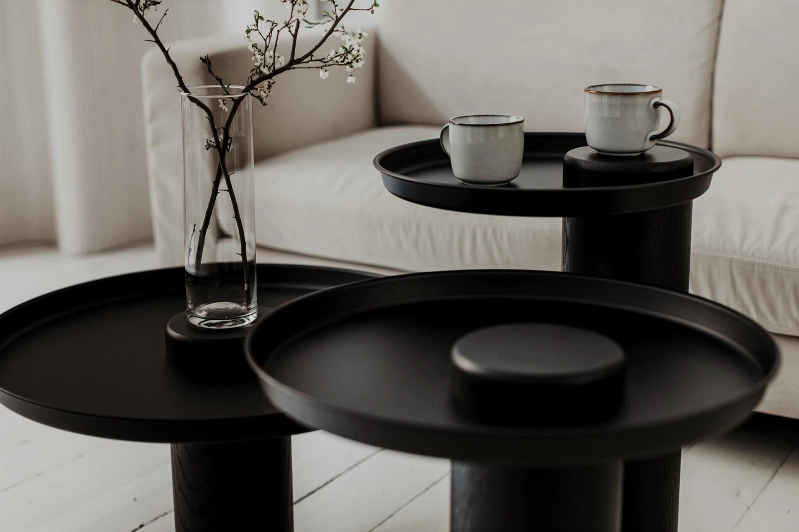 Kulatý konferenční stolek TYK 630 černý dubový od značky NORDIFRA představuje spojení minimalistického designu, kvalitních materiálů a praktičnosti, které dokonale zapadne do moderních, loftových i skandinávských interiérů. Kulatá deska z oceli v hluboké černé barvě o průměru 63 cm spočívá na jedné stabilní noze z masivního dubového dřeva. Výška 35 cm činí z tohoto moderního konferenčního stolku ideální volbu jak do obývacího pokoje, tak jako praktický odkládací stolek k pohovce nebo křeslu.