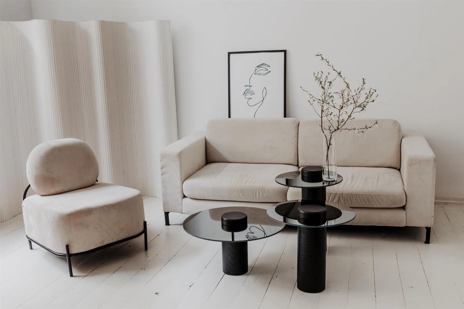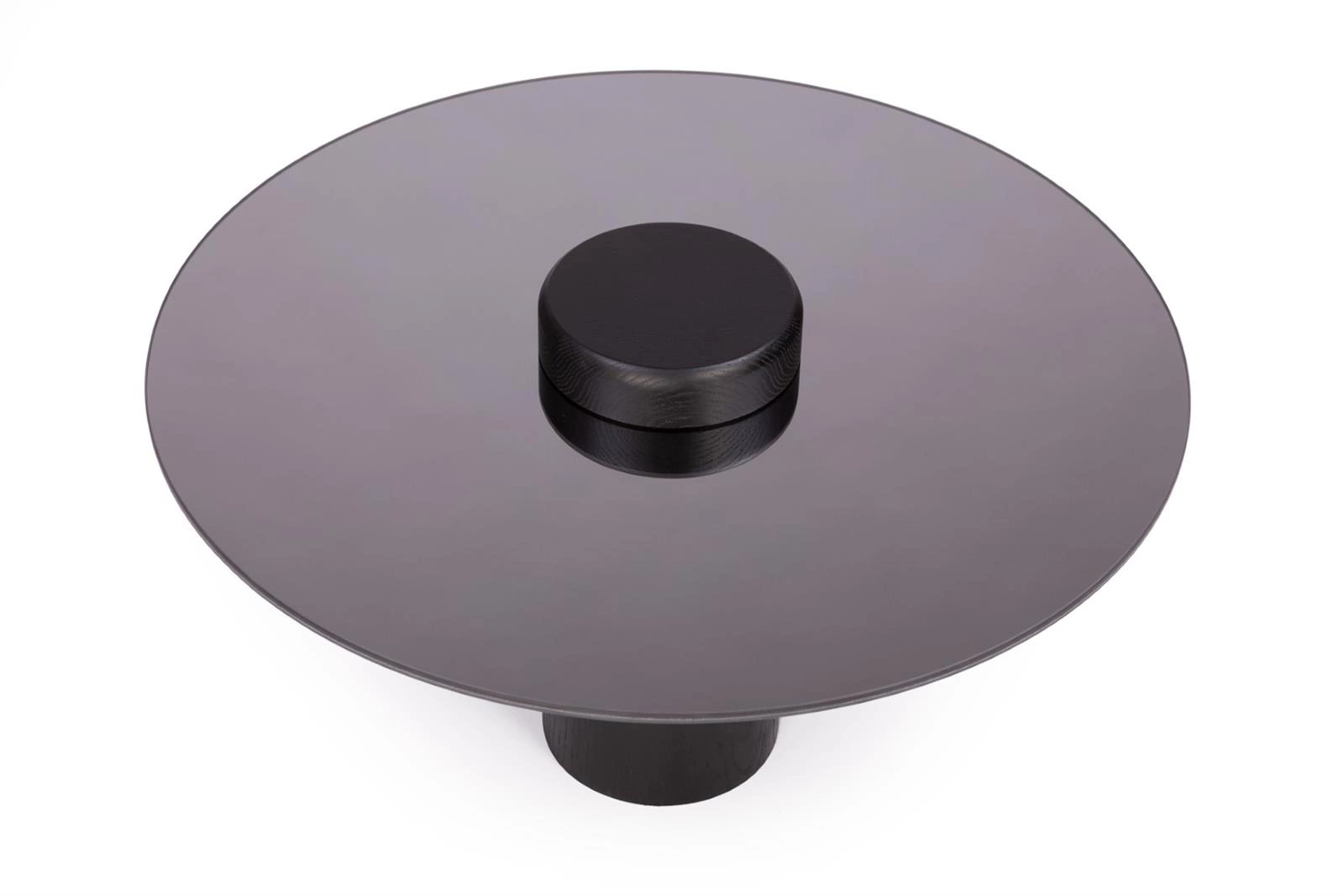 Konferenční stolek TYK 630 spojuje odolnost a praktičnost. Zrcadlová deska o průměru 63 cm nejen skvěle vypadá, ale je také snadná na údržbu – stačí ji otřít vlhkým hadříkem a vždy bude působit dokonale čistě. Dubová podstava lakovaná na černo dodává nábytku eleganci a zajišťuje, že se hodí jak do industriálního, tak do skandinávského interiéru. Výška 35 cm umožňuje pohodlné používání – snadno na stolek položíte šálek kávy, oblíbenou knihu nebo dekorace.- Zrcadlová deska odrážející světlo – opticky zvětšuje prostor a dodává místnosti moderní lesk.