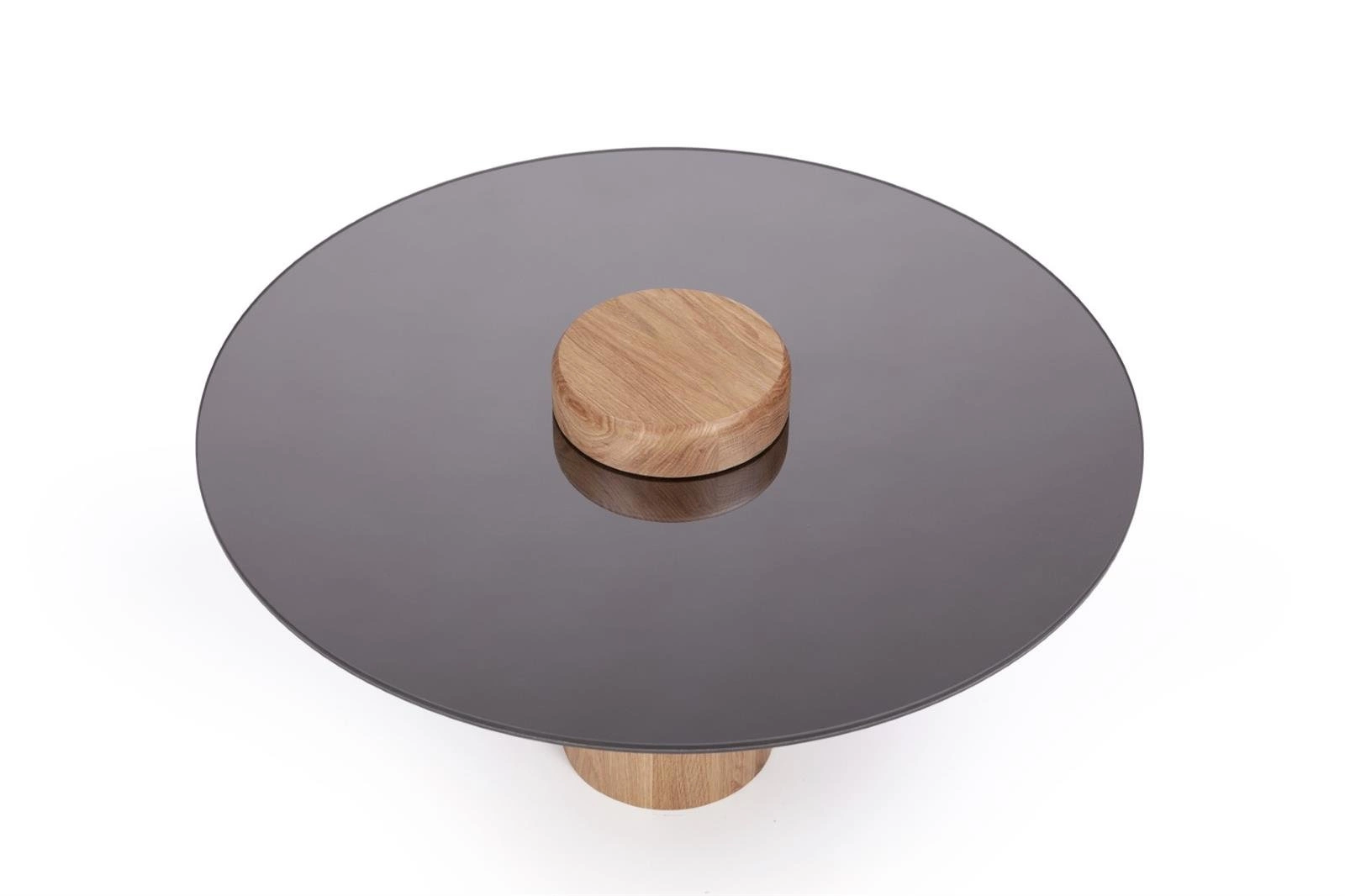 Kulatý konferenční stolek skleněný se zrcadlem TYK 63 cm dubový – NORDIFRA