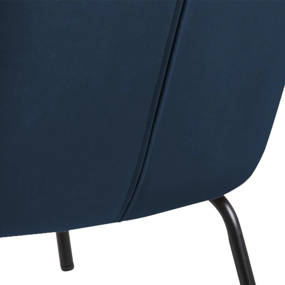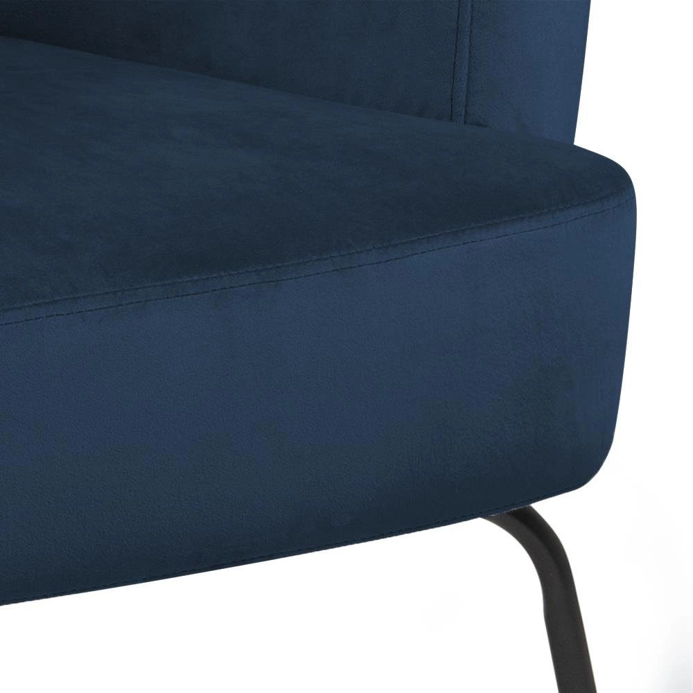 Melissa je křeslo, které okouzlí jednoduchými liniemi a jemnými detaily typickými pro skandinávský design. Hladký tvar opěrky a klasická silueta zaručují, že se perfektně hodí jak do moderních, tak i tradičních aranžmá obývacího pokoje, ložnice nebo domácí kanceláře. Výrazný, tmavě modrý odstín sametu podtrhuje jeho jedinečnost a přináší do interiéru útulnost i eleganci, zatímco černé kovové nohy dodávají moderní vzhled.