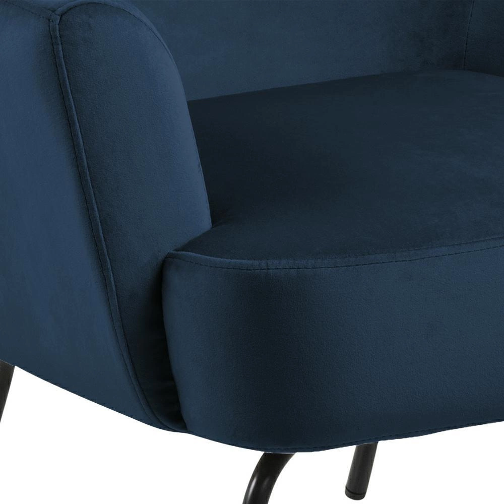 Křeslo ušák Melissa od značky Actona je moderní křeslo do obývacího pokoje v tmavě modrém sametu, které kombinuje pohodlí s nadčasovým skandinávským stylem. Široké sedadlo (75 cm), komfortní opěrka zad a měkké čalounění zajišťují ideální volbu pro odpočinek, čtení knihy nebo relaxaci po náročném dni. Stabilní černá kovová základna a kvalitní sametová látka garantují dlouhou životnost a snadnou údržbu, zároveň však dodávají interiéru elegantní a sofistikovaný charakter.