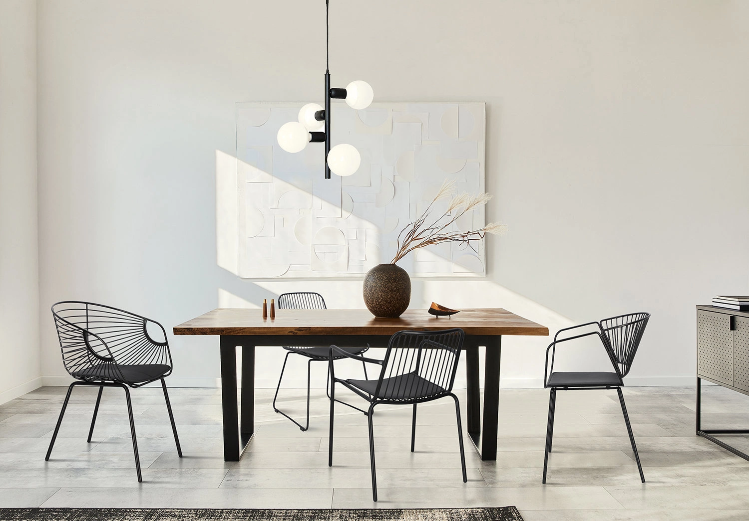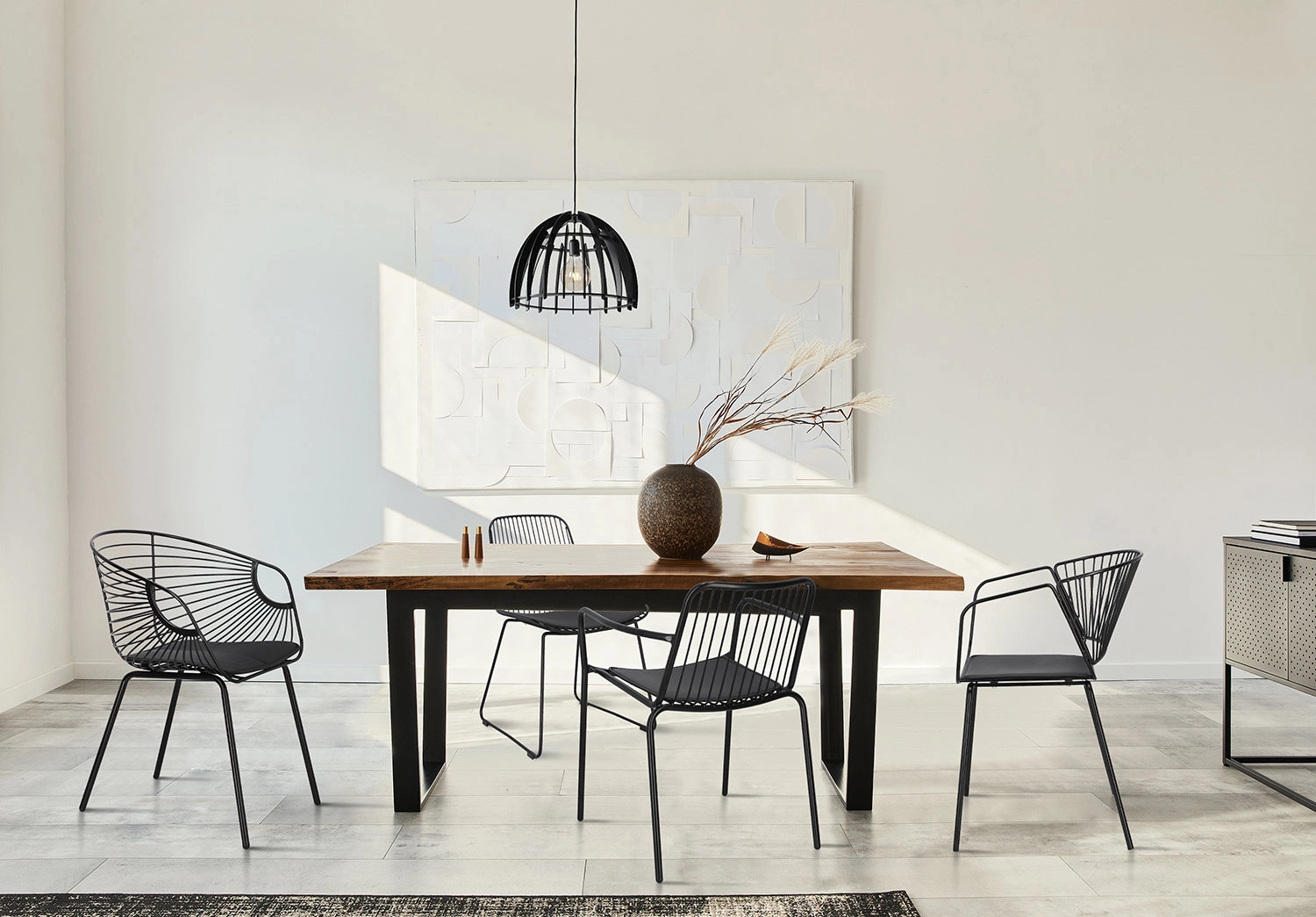 Židle Dill je perfektní volbou pro ty, kdo hledají originální řešení do moderních domácností. Její vzdušná konstrukce a černé provedení podtrhují industriální, loftový charakter a vnáší do prostoru lehkost i výrazný prvek. Kovová konstrukce s matnou povrchovou úpravou nejen skvěle vypadá, ale také zaručuje dlouhou životnost i při intenzivním používání. Díky tomu židle výborně doplní otevřené jídelny, útulné kuchyně i stylové obývací pokoje.