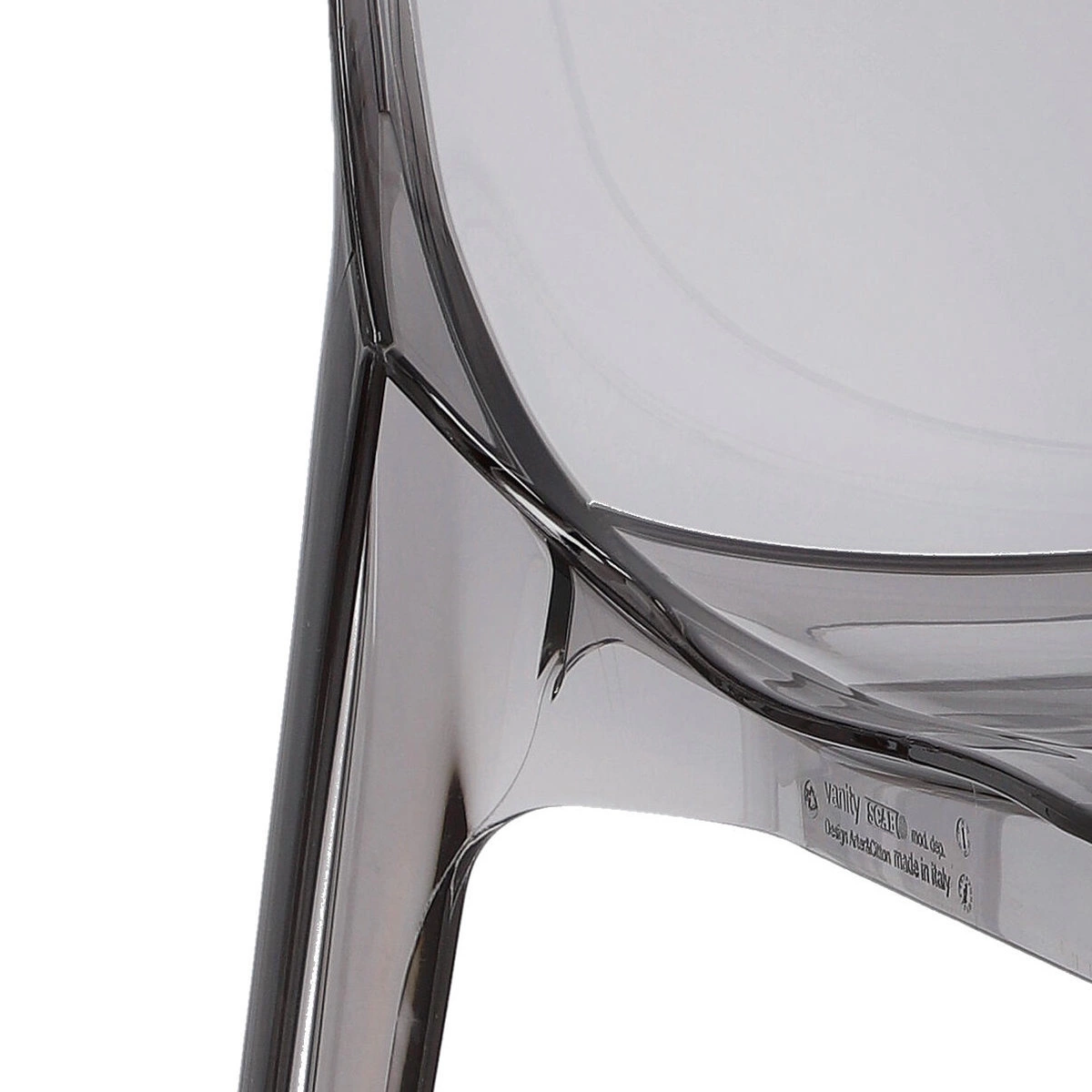 Transparentní židle Vanity od značky SCAB Design spojuje moderní design, lehkost tvaru a praktičnost, díky čemuž je ideální volbou do jídelny, kuchyně nebo obývacího pokoje. Vyrobena z odolného plastu, nabízí pohodlné sezení ve výšce 47 cm a snadnou údržbu. Průhledné, kouřově zbarvené provedení dodává interiéru eleganci a opticky zvětšuje prostor, zatímco možnost stohování výrazně usnadňuje skladování a organizaci místa.