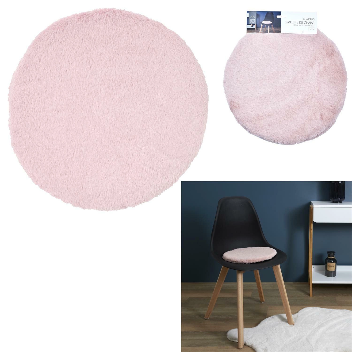 - Kulatý tvar s průměrem 34 cm – perfektní pro většinu populárních židlí