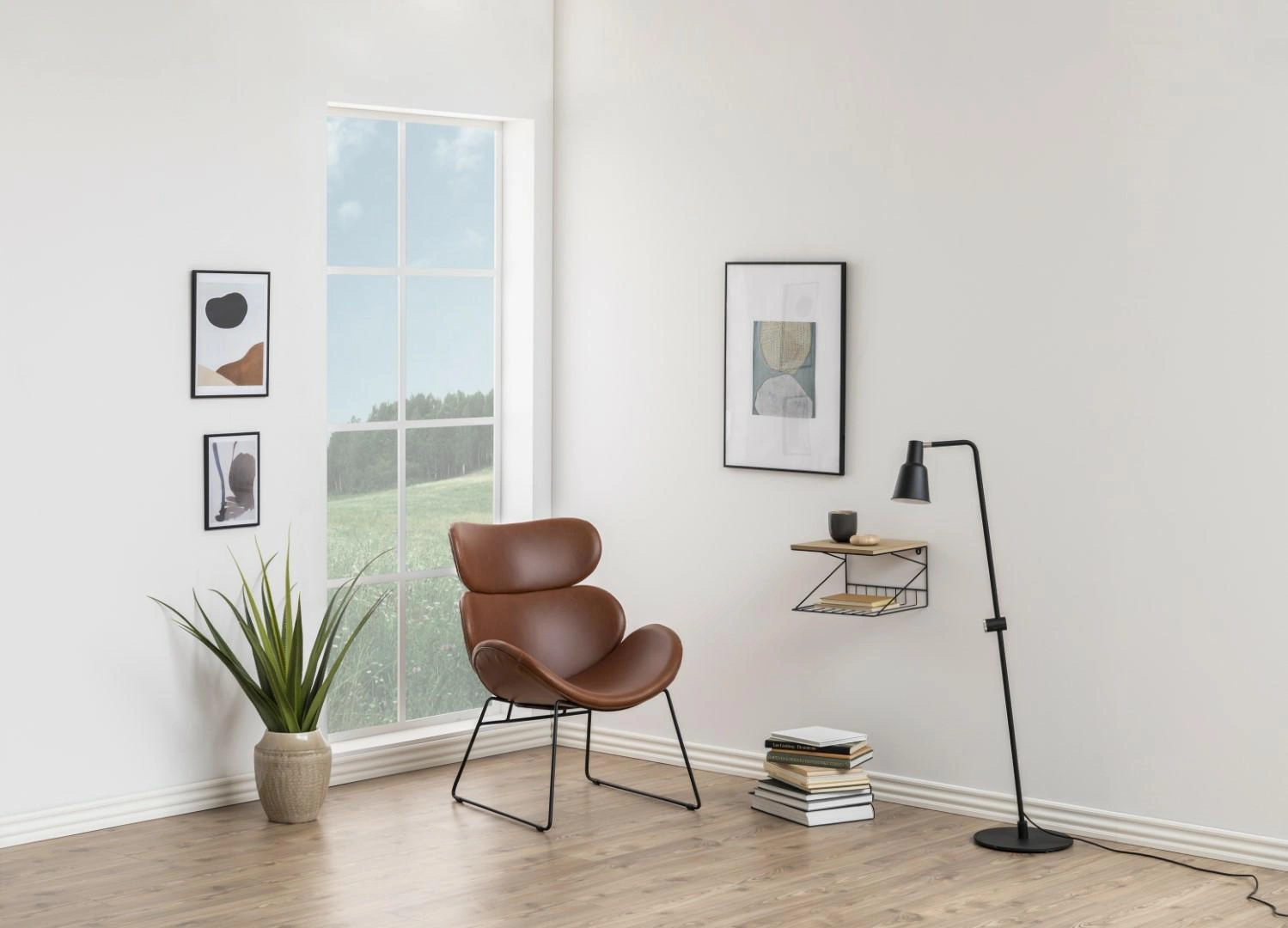 Křeslo Cazar je ideální volbou pro ty, kteří oceňují originální design a praktičnost. Jeho hnědá ekokůže s retro nádechem navozuje v místnosti příjemnou, útulnou atmosféru, zatímco černé kovové lyžiny podtrhují jeho syrový industriální charakter. Skvěle vynikne jak v moderním obýváku, tak v kanceláři nebo stylové pracovně. Perfektně poslouží jako pohodlné křeslo na čtení, televizní křeslo nebo designové relaxační křeslo do odpočinkové zóny.