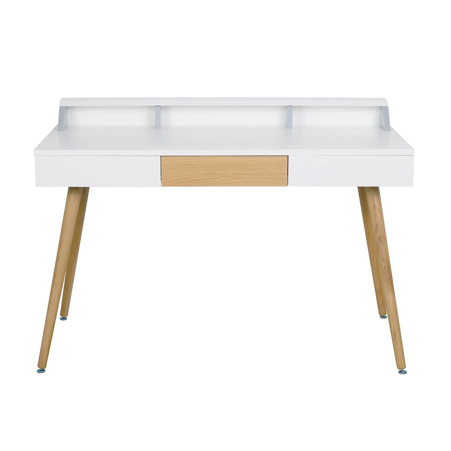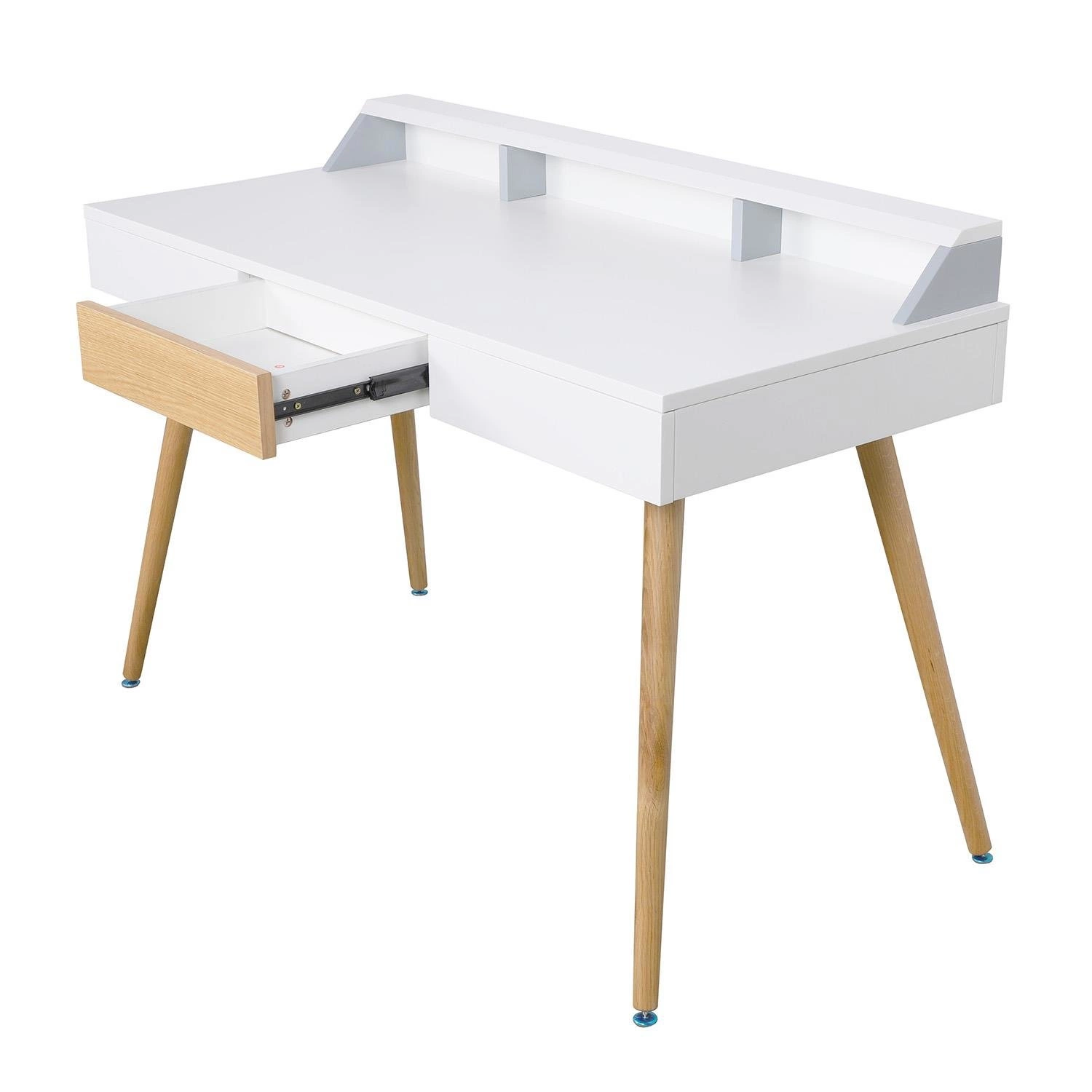 Minimalistický design stolu Skans odpovídá nadčasovému skandinávskému stylu. Kombinace bílé desky s přírodními dřevěnými nohami opticky rozjasňuje prostor a přináší do interiéru svěžest a lehkost. Hladké čelo zásuvky se dokonale sladí s celkem, díky čemuž stůl působí elegantně jak v pokoji teenagera, tak i ve stylové domácí kanceláři. Přírodní bukové dřevo zajišťuje stabilitu a dlouhou životnost při každodenním používání.