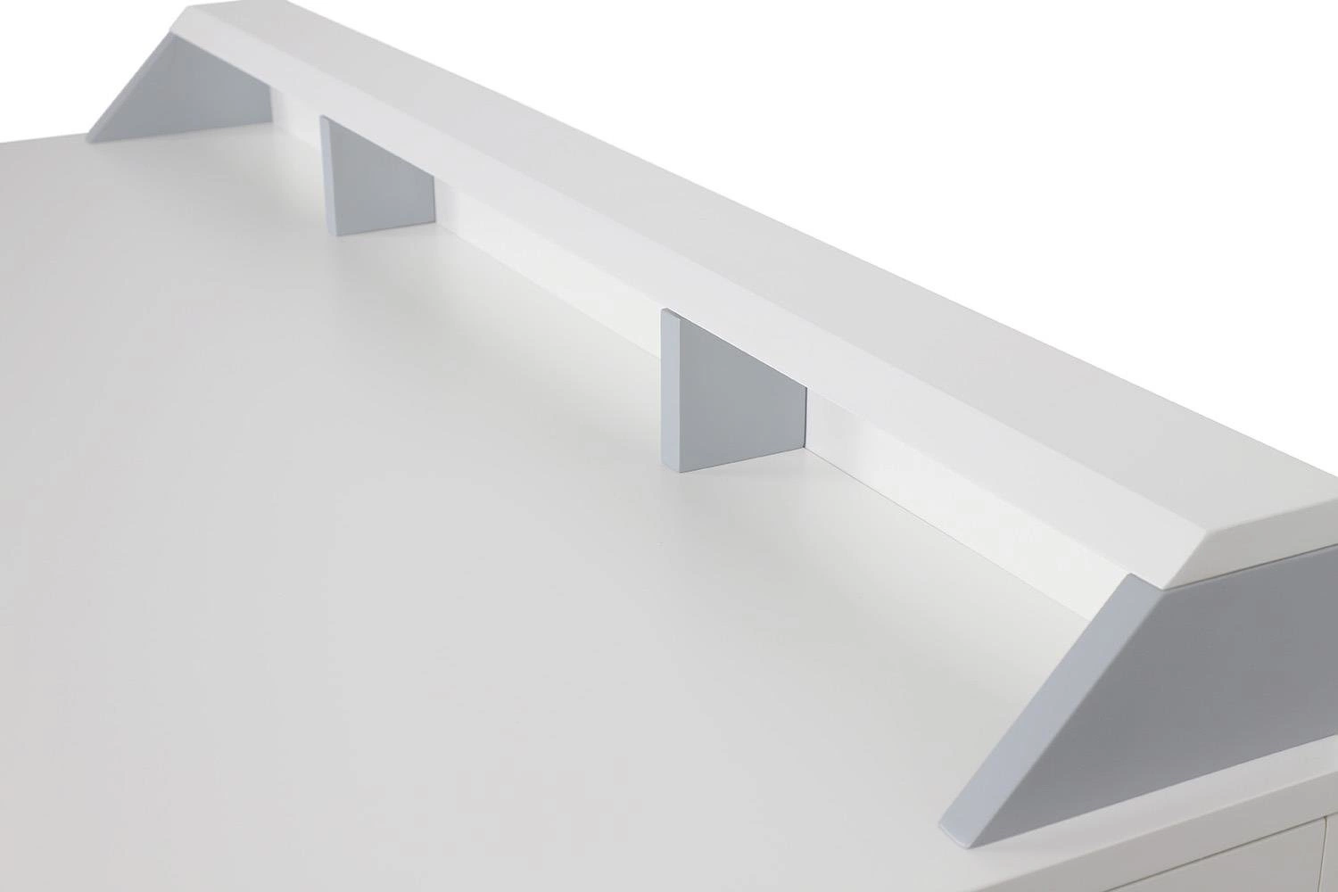 Bílý stůl se zásuvkou a nástavcem Skans je ideální pro ty, kteří ocení pořádek a praktičnost během každodenní práce. Prostorná pracovní plocha o hloubce 55 cm poskytuje dostatek místa pro notebook, sešity či dokumenty, zatímco nástavec s praktickými policemi umožňuje ukládání potřebných doplňků, poznámek a drobností. Zásuvka pod deskou je perfektním řešením pro uložení důležitých věcí, které chcete mít vždy po ruce, ale zároveň mimo dohled.