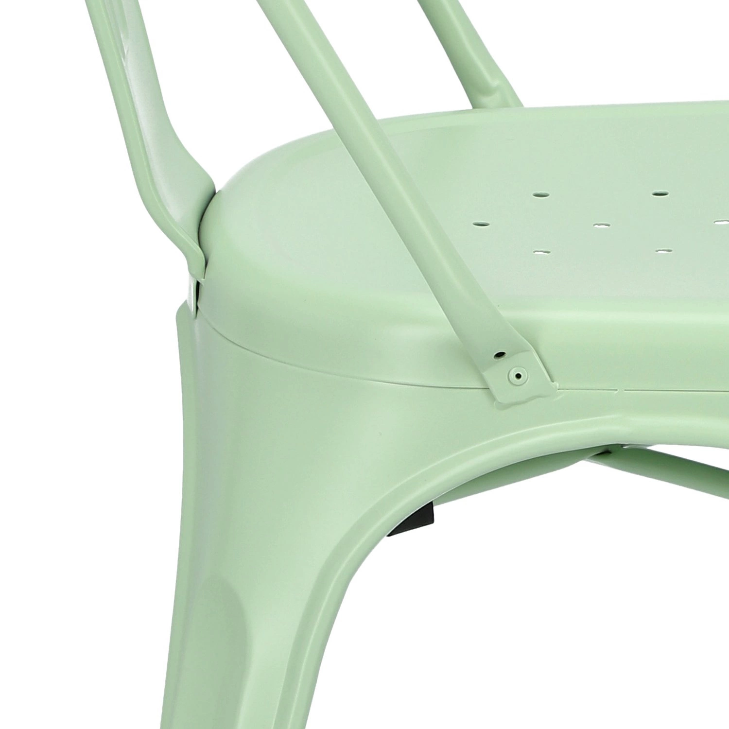 Kovová židle Paris inspirovaná legendárním designem Tolix je volbou pro ty, kteří preferují moderní a loftové interiéry. Zelená barva skvěle rozbíjí syrovost kovu a přináší do prostoru svěžest a jedinečnost. Díky minimalistickému tvaru a pevné konstrukci se židle výborně hodí jako jídelní židle, židle do kuchyně nebo designový prvek do kavárny.
