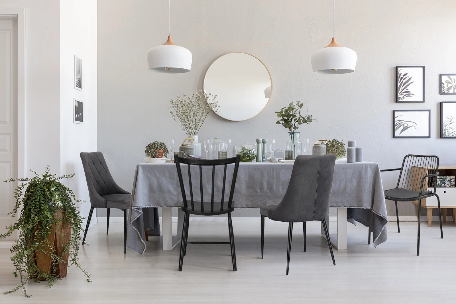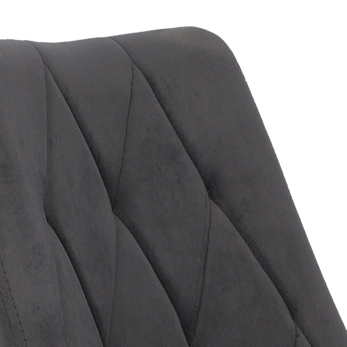Měkká sametová látka v šedém provedení nejen působí velmi stylově, ale také zaručuje příjemné posezení – i během dlouhých večeří či posezení u stolu. Opěradlo zdobí výrazné prošívání, které podtrhuje glamour charakter nábytku a zároveň umožňuje lepší přizpůsobení tvaru zad. Absence područek znamená, že židli Magnat snadno zasunete pod stůl, čímž ušetříte místo v jídelně či kuchyni.