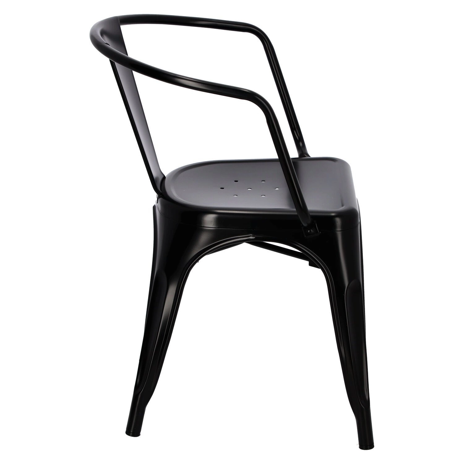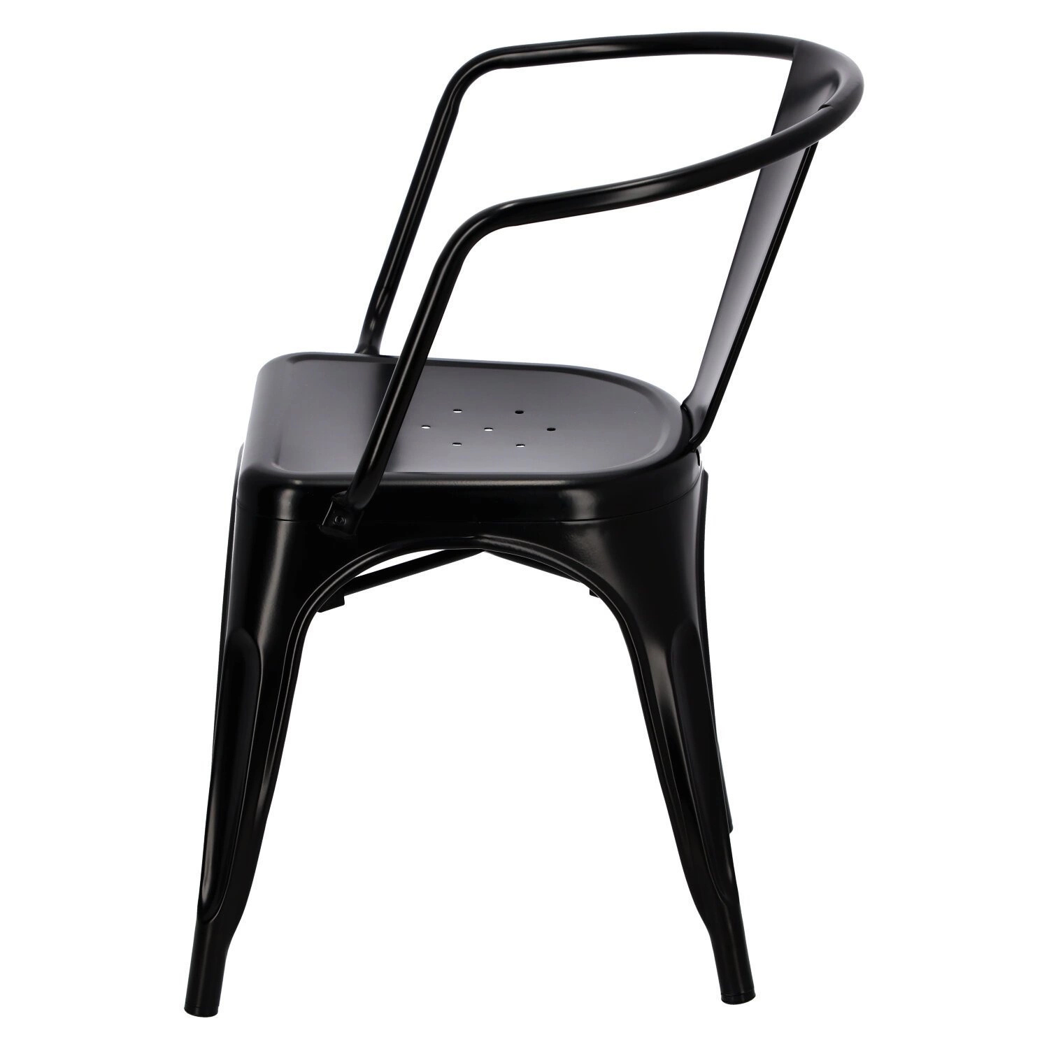 Paris Arms je kovová židle, která okamžitě dodá interiéru výrazný, moderní charakter. Její černý, lesklý povrch podtrhuje industriální atmosféru prostoru a jemné detaily inspirované klasickým Tolix designem z ní dělají skvělou volbu do loftové jídelny, kuchyně nebo moderní restaurace. Díky jednoduchému a zároveň elegantnímu tvaru se židle hodí jak do minimalistických, tak i do eklektických interiérů.