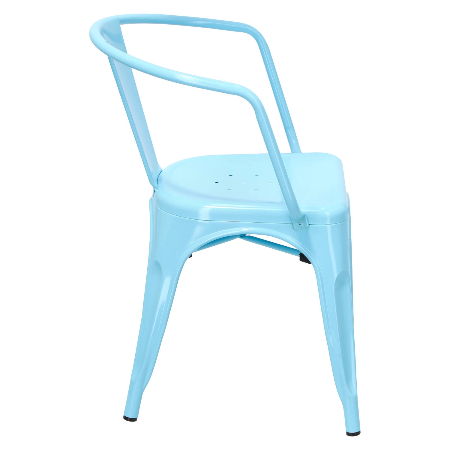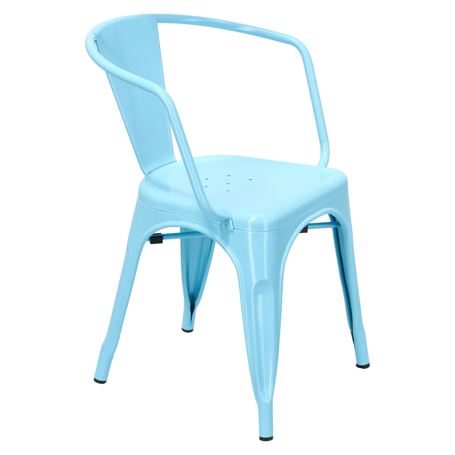 Kovová židle Paris Arms modrá do jídelny a kuchyně ve stylu Tolix industriální