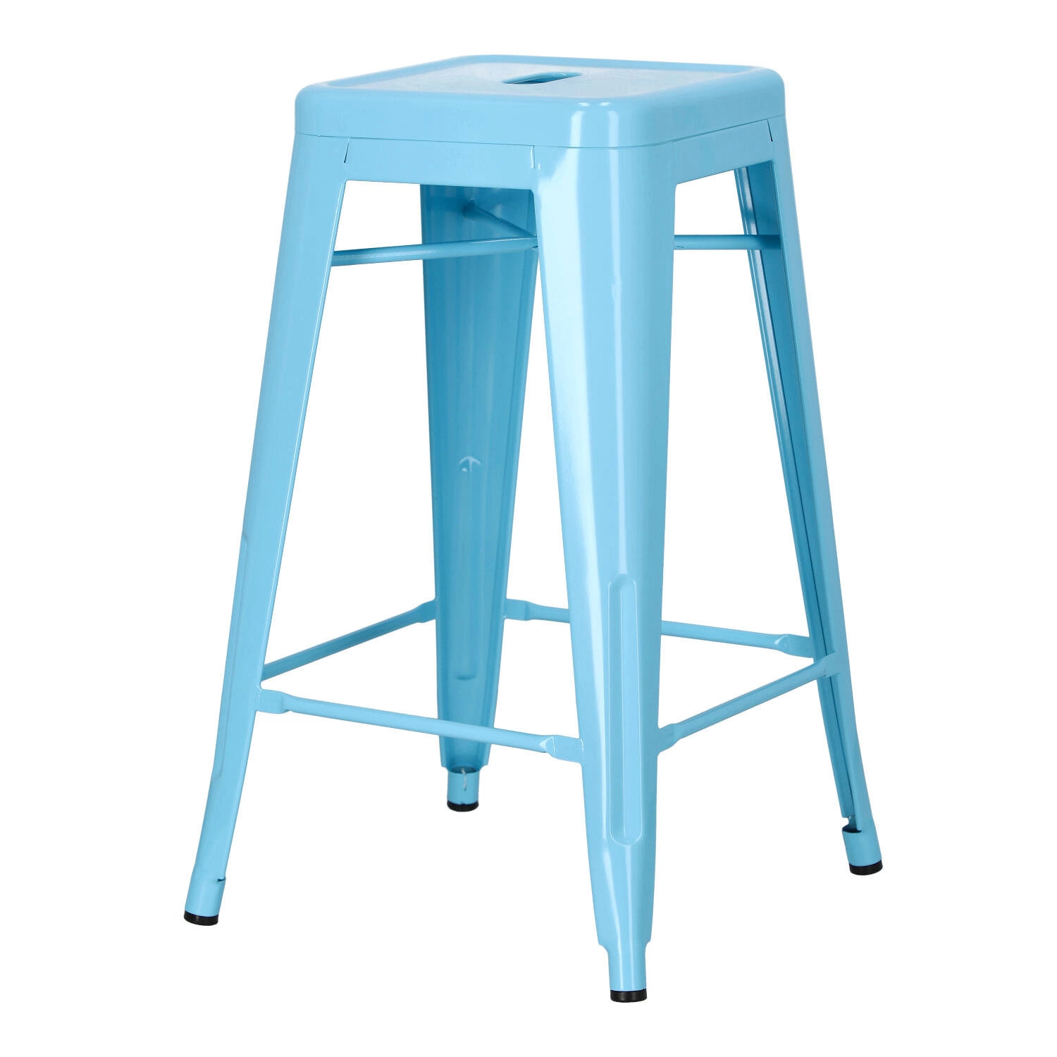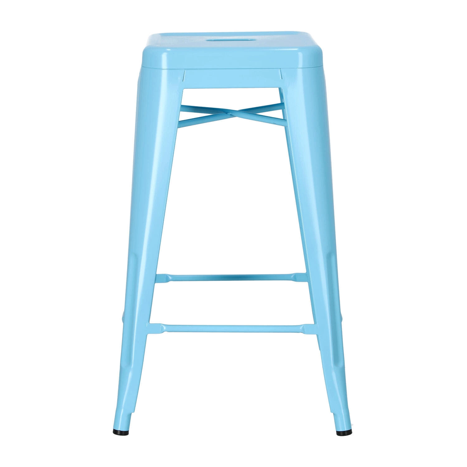 Barová stolička Paris 66 cm modrá kovová industriální bez opěrky k kuchyňskému ostrůvku D2.DESIGN