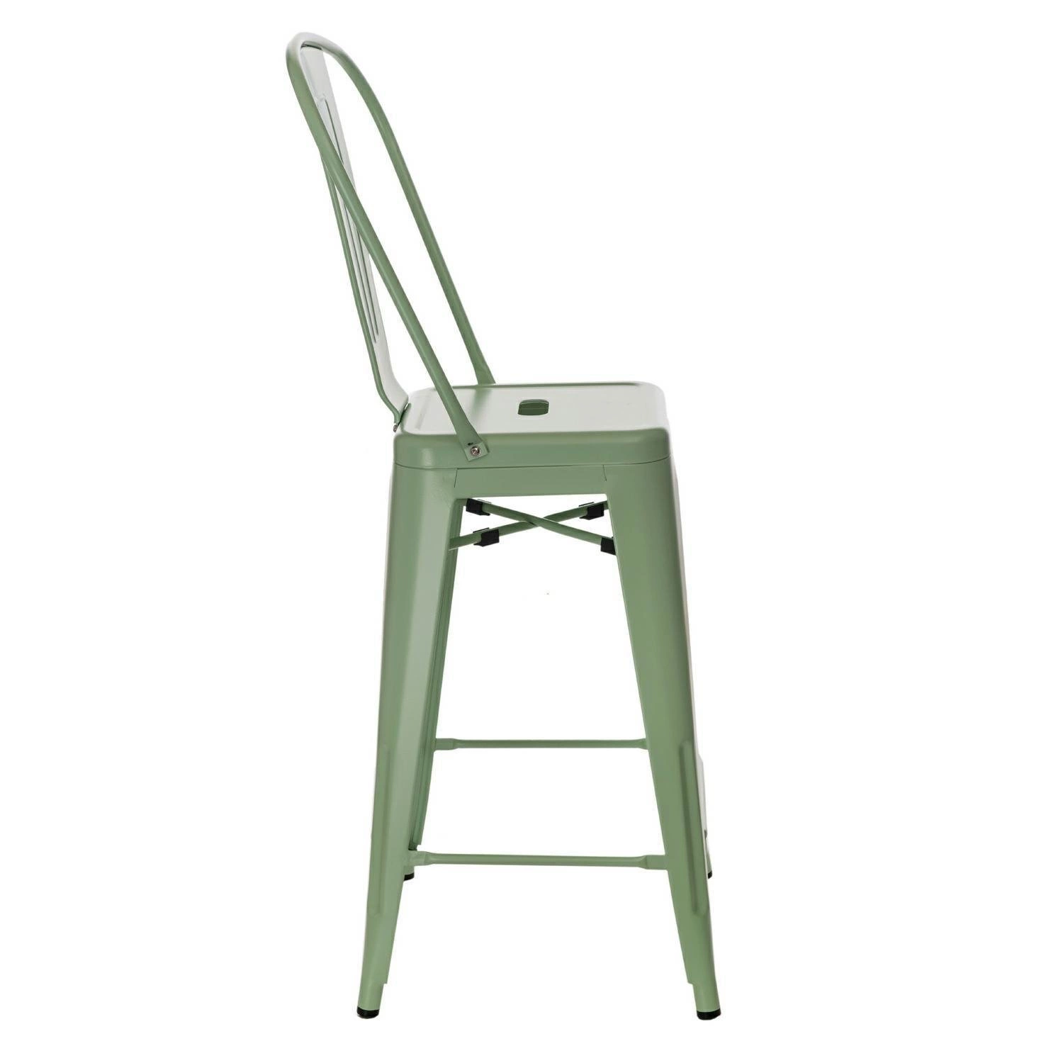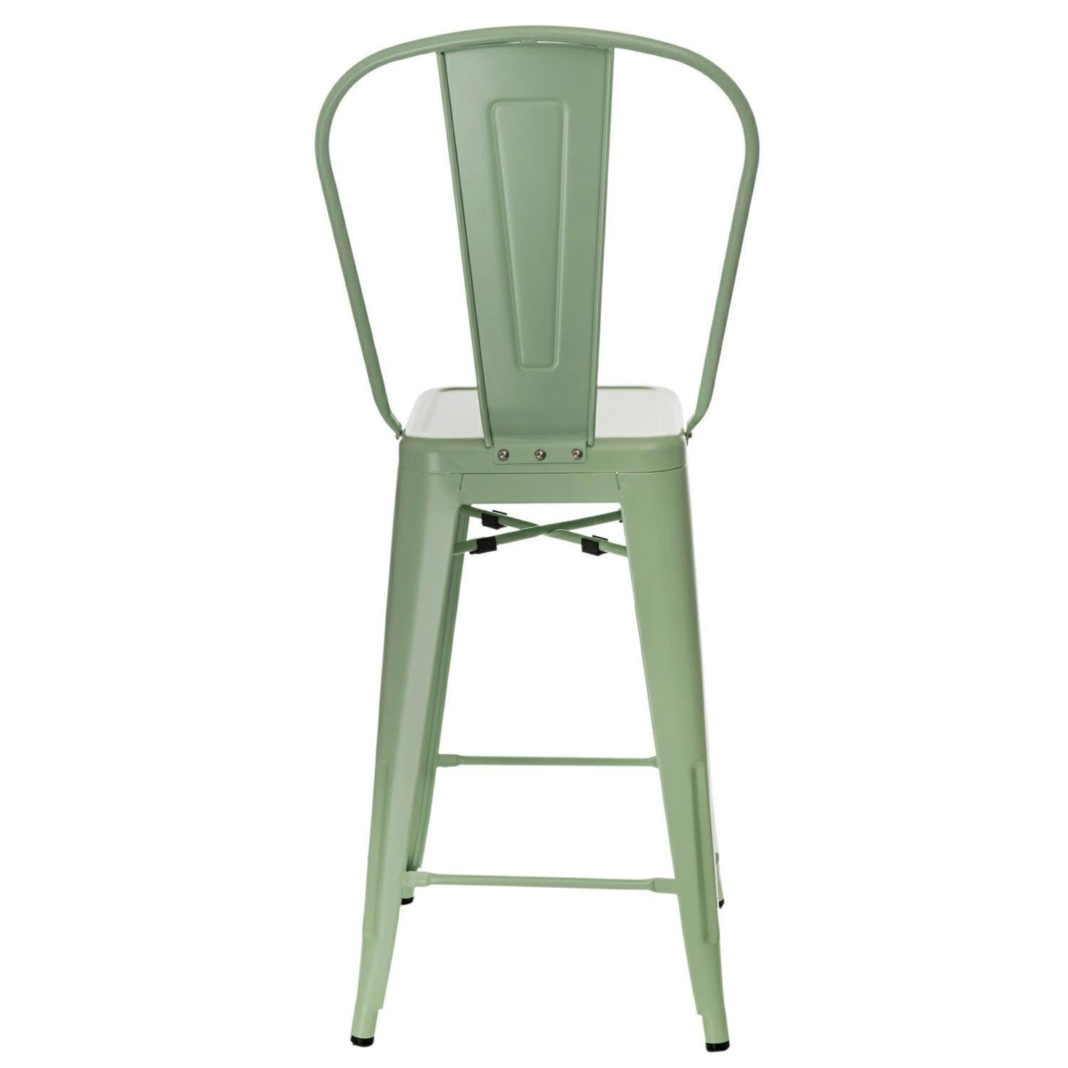 Barová židle Paris Back 66 cm zelená kovová s opěrkou do kuchyně a k ostrůvku industriální D2.DESIGN