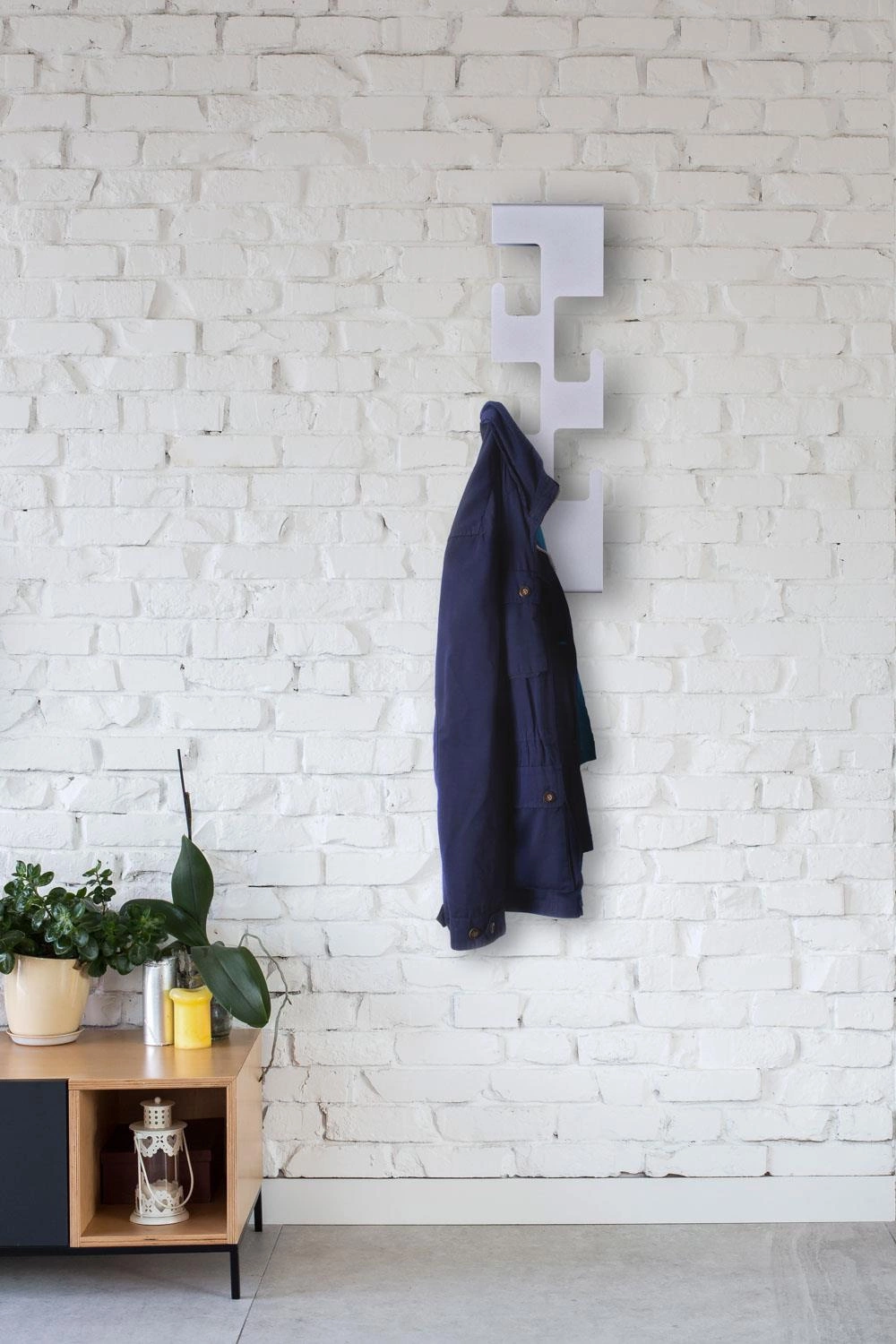 Věšák Zip je vyroben z práškově lakovaného kovu v pololesklém provedení. Jednoduchý tvar připomíná zip, který věšáku dodává moderní výraz a bude vypadat zajímavě v každé místnosti. pr.Věšák má mírně trojrozměrný tvar se 4 háčky, které byly navrženy tak, aby usnadnily udržování pořádku v místnosti. věšák se dodává s montážní sadou, která se skládá ze 4 hmoždinek, 4 ubek a 4 zátek. Barva RAL 9006 Vlastnosti výrobku: - oprýskaná barva na rozích věšáku