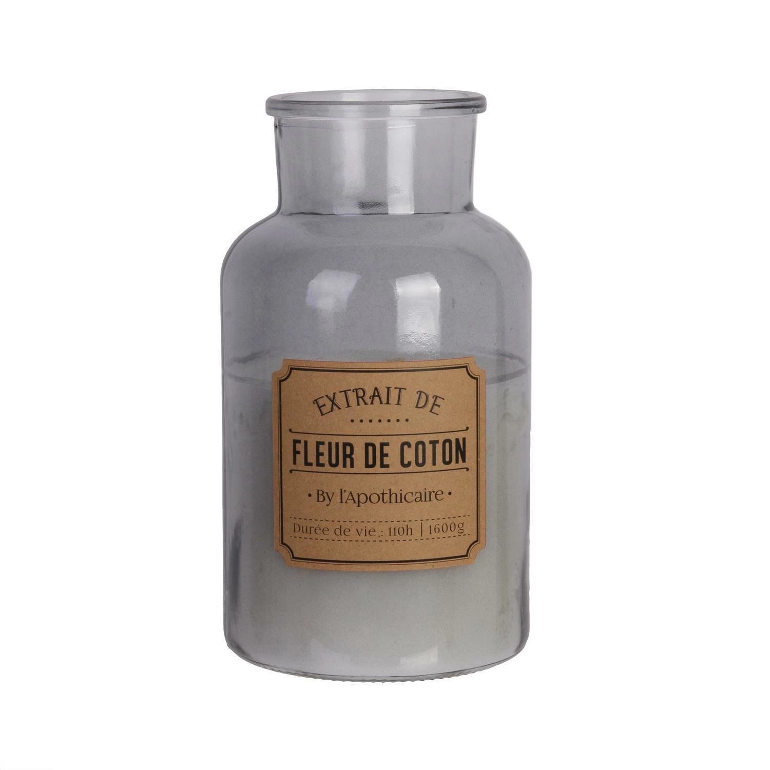 Vonná svíčka XL Fleur de coton od značky Intesi spojuje jedinečný retro design s moderním komfortem používání. Velká, šedá svíčka z vysoce kvalitního parafínového vosku je uzavřena ve stylové lahvi inspirované starými lékárenskými nádobami, takže je nejen elegantní dekorací, ale i zdrojem jemné, květinové vůně. S výškou 21 cm a šířkou 10 cm je tato vonná svíčka ideální jak do obývacího pokoje, tak do ložnice – navodí útulnou a stylovou atmosféru každému interiéru.
