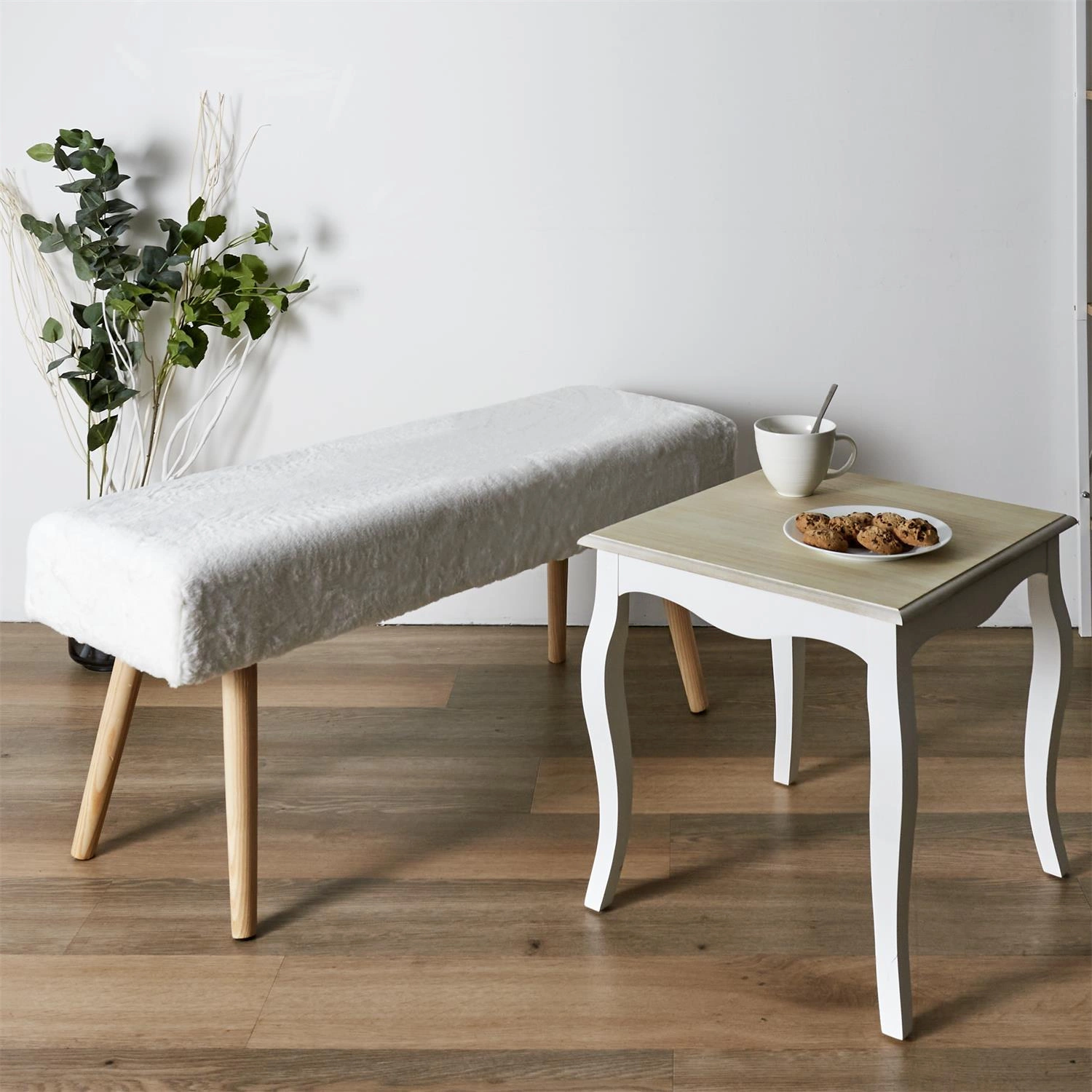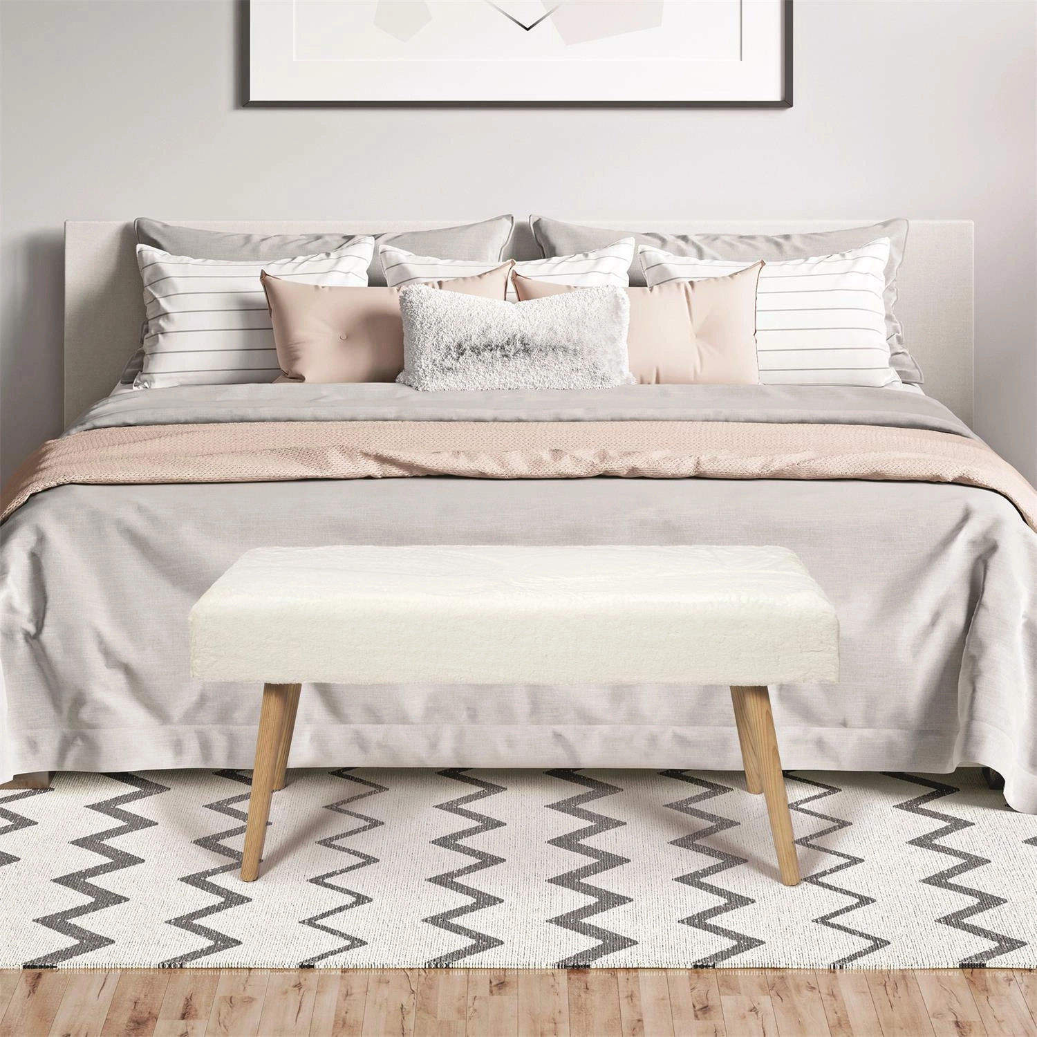 Design lavice Paquet Furry se hodí do moderních nebo boho interiérů.