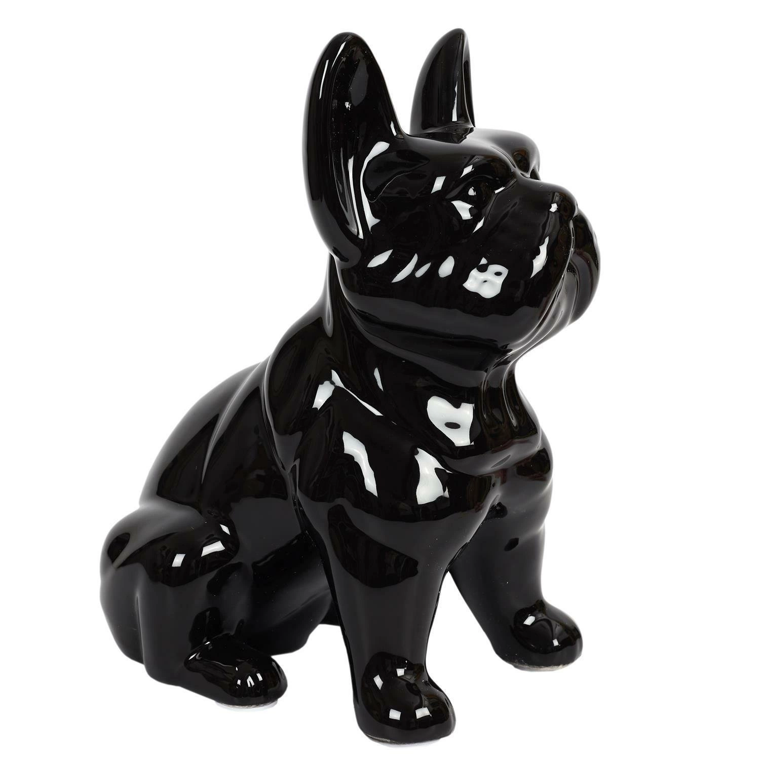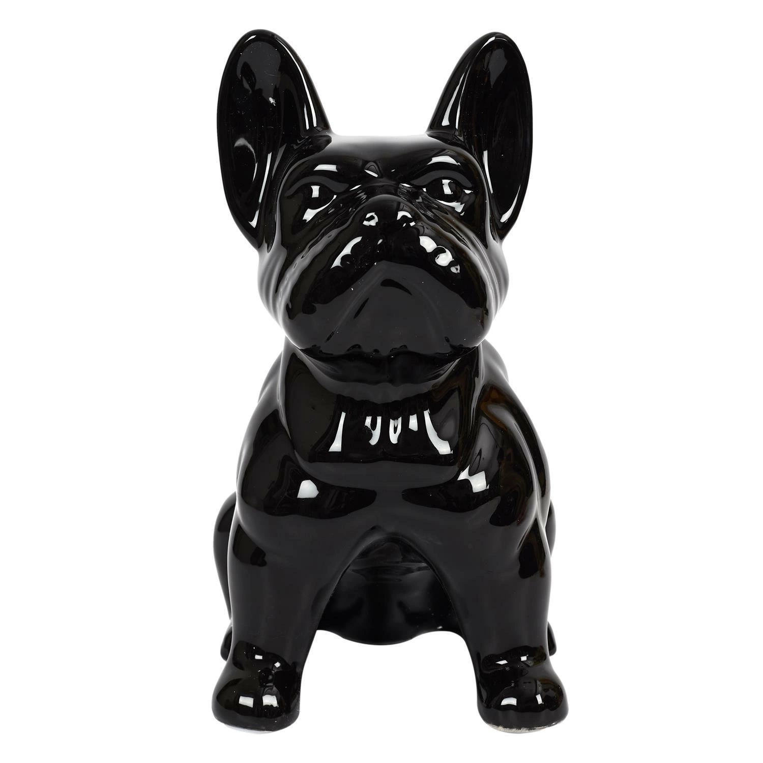 Tato černá keramická figurka francouzského buldočka vyniká minimalistickým, ale zároveň výrazným tvarem. Lesklý povrch se perfektně hodí do moderních i glamour interiérů, kterým dodá sofistikovaný charakter. Figurka vypadá skvěle jako samostatná dekorace na polici, ale i v kombinaci s dalšími ozdobnými figurkami, čímž vytvoří harmonickou kompozici.