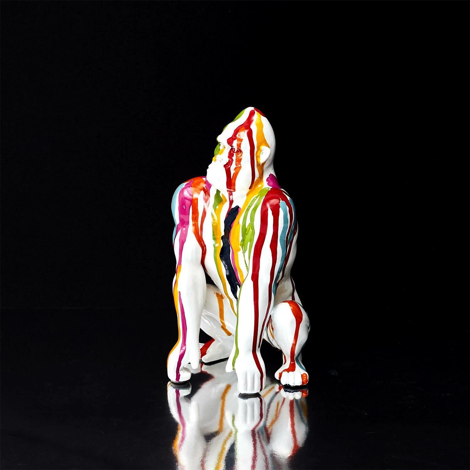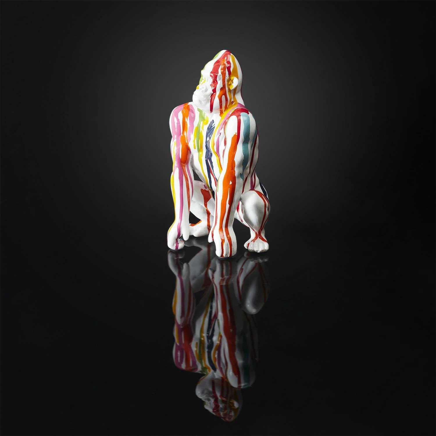 Dekorační figurka gorily Intesi je moderní ozdobou o výšce 24 cm, vyrobenou z odolného plastu a zaujme pestrou, výraznou barevností. Představuje nepřehlédnutelný dekorační prvek, který skvěle vynikne na komodě v obývacím pokoji, na polici nebo v designové kanceláři. Originální tvar gorily odpovídá aktuálním trendům v interiérovém designu a dodá vašemu prostoru umělecký nádech a pozitivní energii.